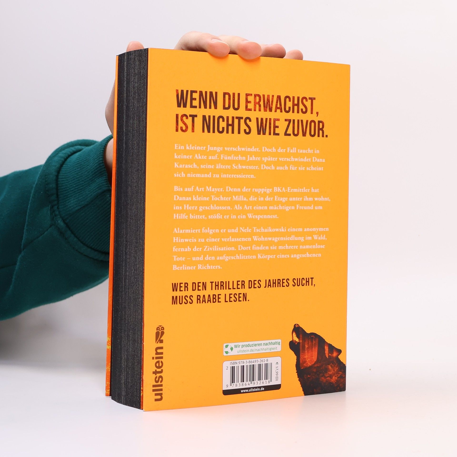 Wenn Du erwachst, ist nichts wie zuvor. Ein kleiner Junge verschwindet. Doch der Fall taucht in keiner Akte auf. Fünfzehn Jahre später verschwindet Dana Karasch, seine ältere Schwester. Doch auch für sie scheint sich niemand zu interessieren. Bis auf Art Mayer. Denn der ruppige BKA-Ermittler hat Danas kleine Tochter Milla, die in der Etage unter ihm wohnt, ins Herz geschlossen. Als Art einen mächtigen Freund um Hilfe bittet, stößt er in ein Wespennest. Ein anonymer Hinweis führt ihn und Nele Tschaikowski zu einer verlassenen Wohnwagensiedlung im Wald, fernab der Zivilisation. Dort finden sie mehrere namenlose Tote – und den aufgeschlitzten Körper eines angesehenen Berliner Richters. »Figuren, Plot, Timing – hier stimmt einfach alles.« krimi-couch.de Wer den Thriller des Jahres sucht, kommt an Marc Raabe nicht vorbei.