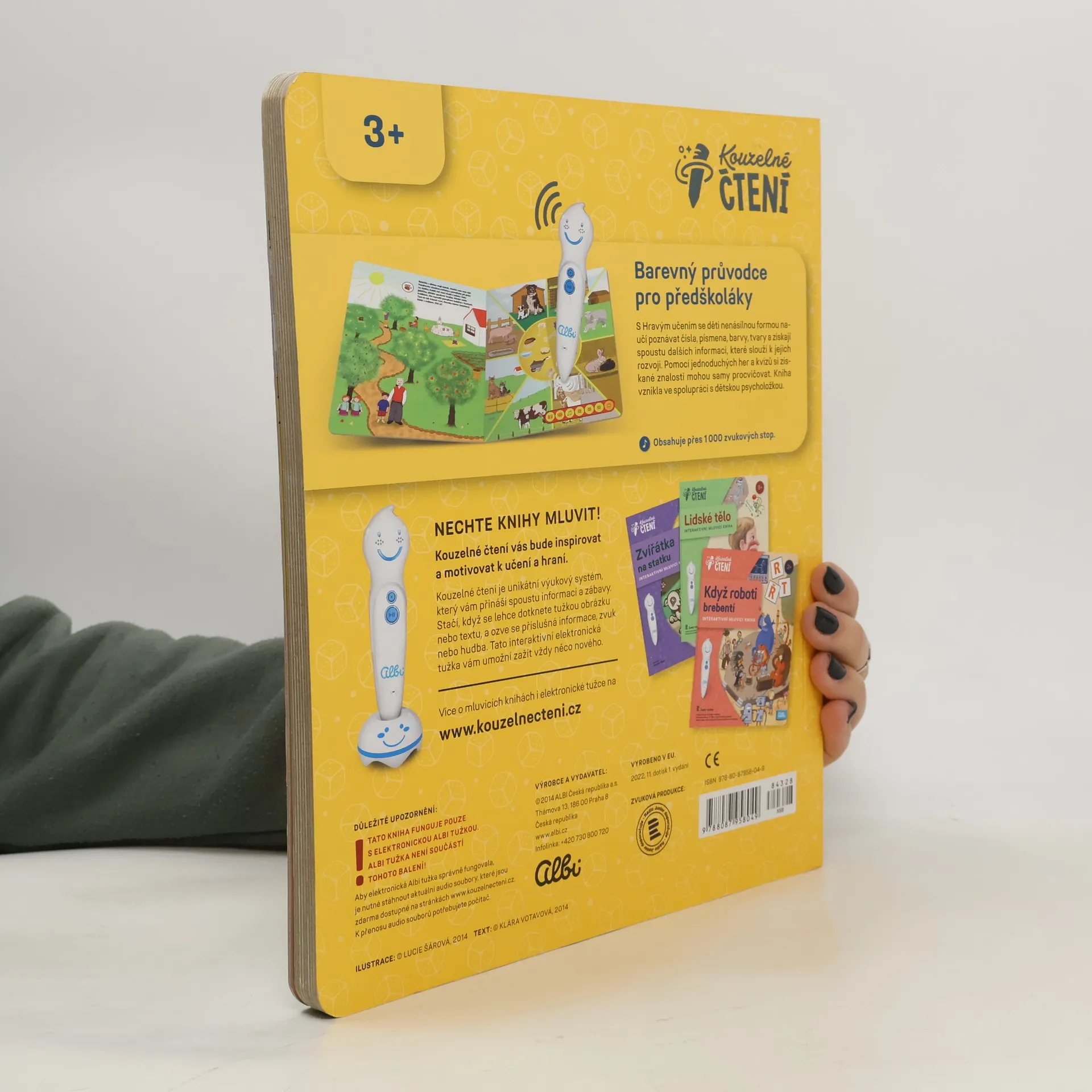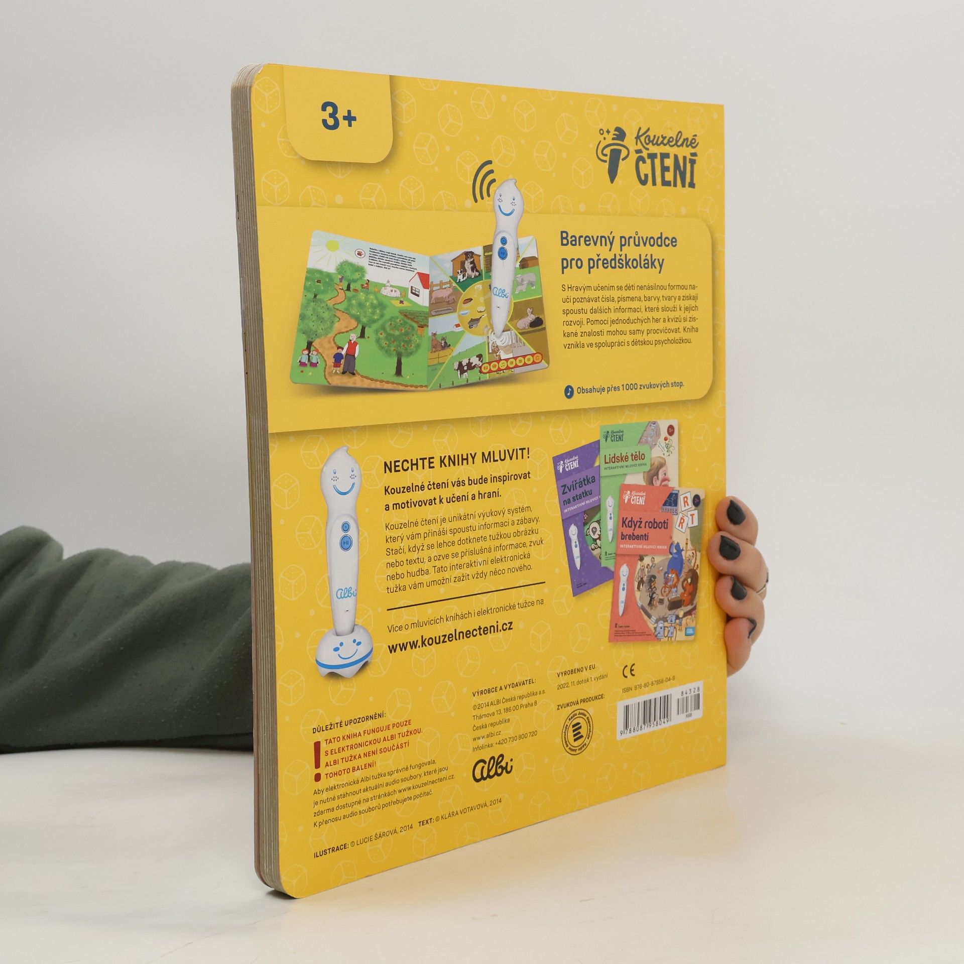 S knihou se děti nenásilnou formou naučí poznávat čísla, písmena, barvy, tvary a získají spoustu dalších informací, které slouží k jejich rozvoji. Pomocí jednoduchých her a kvízů si získané znalosti mohou samy procvičovat. Kniha vznikla ve spolupráci s dětskou psycholožkou. Kouzelné čtení je unikátní výukový systém, který přináší spoustu informací a zábavy. Stačí, když se lehce dotknete tužkou obrázku nebo textu, ozve se příslušná informace, zvuk nebo hudba. Tato interaktivní elektronická tužka vám umožní zažít vždy něco nového.