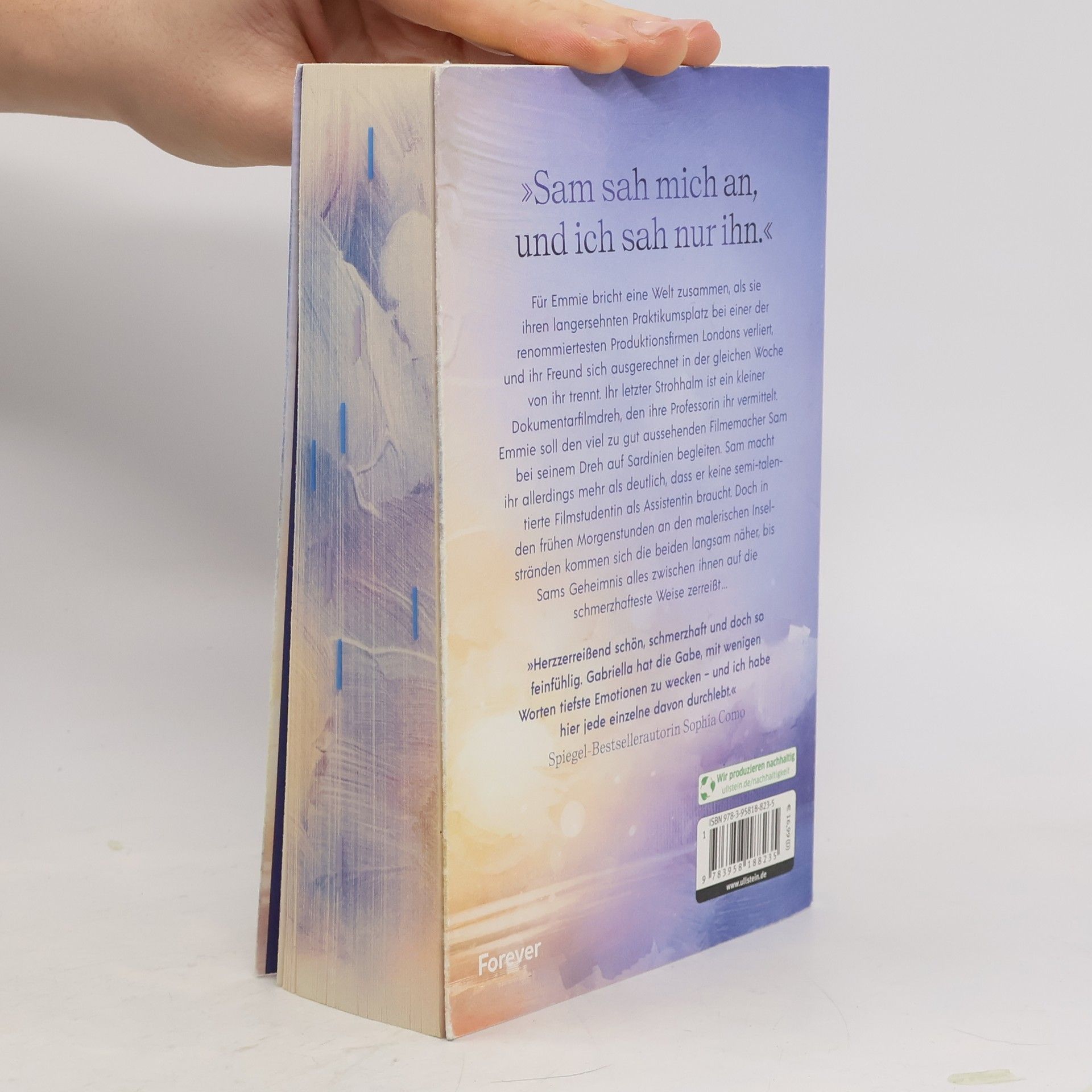 Der Auftakt der herzzerreißenden New-Adult-Dilogie von Spiegel-Bestsellerautorin Gabriella Santos de Lima - mit außergewöhnlicher Ausstattung nur in der ersten Auflage - Für Emmie bricht eine Welt zusammen, als sie ihren langersehnten Praktikumsplatz bei einer der renommiertesten Produktionsfirmen Londons verliert, und ihr Freund sich ausgerechnet in der gleichen Woche von ihr trennt. Ihr letzter Strohhalm ist ein kleiner Dokumentarfilmdreh, den ihre Professorin ihr vermittelt. Emmie soll den viel zu gut aussehenden Filmemacher Sam bei seinem Dreh auf Sardinien begleiten. Sam macht ihr allerdings mehr als deutlich, dass er keine semi-talentierte Filmstudentin als Assistentin braucht. Doch in den frühen Morgenstunden an den malerischen Inselstränden kommen sich die beiden langsam näher, bis Sams Geheimnis alles zwischen ihnen auf die schmerzhafteste Weise zerreißt … "Gabriella Santos de Limas Geschichten sind echt, ihre Sprache poetisch und roh zugleich – schön, aber nie beschönigend. Wenn Gaby schreibt, ist das am Ende immer ein wenig wie Magie." Spiegel-Bestsellerautorin Ava Reed Tropen: Ugly Cry, Hidden Secrets, Only One Bed, Roadtrip Band 1: Moments so blue like our love - Emmie & Sam Band 2: Memories so golden like us - Connor & Blair