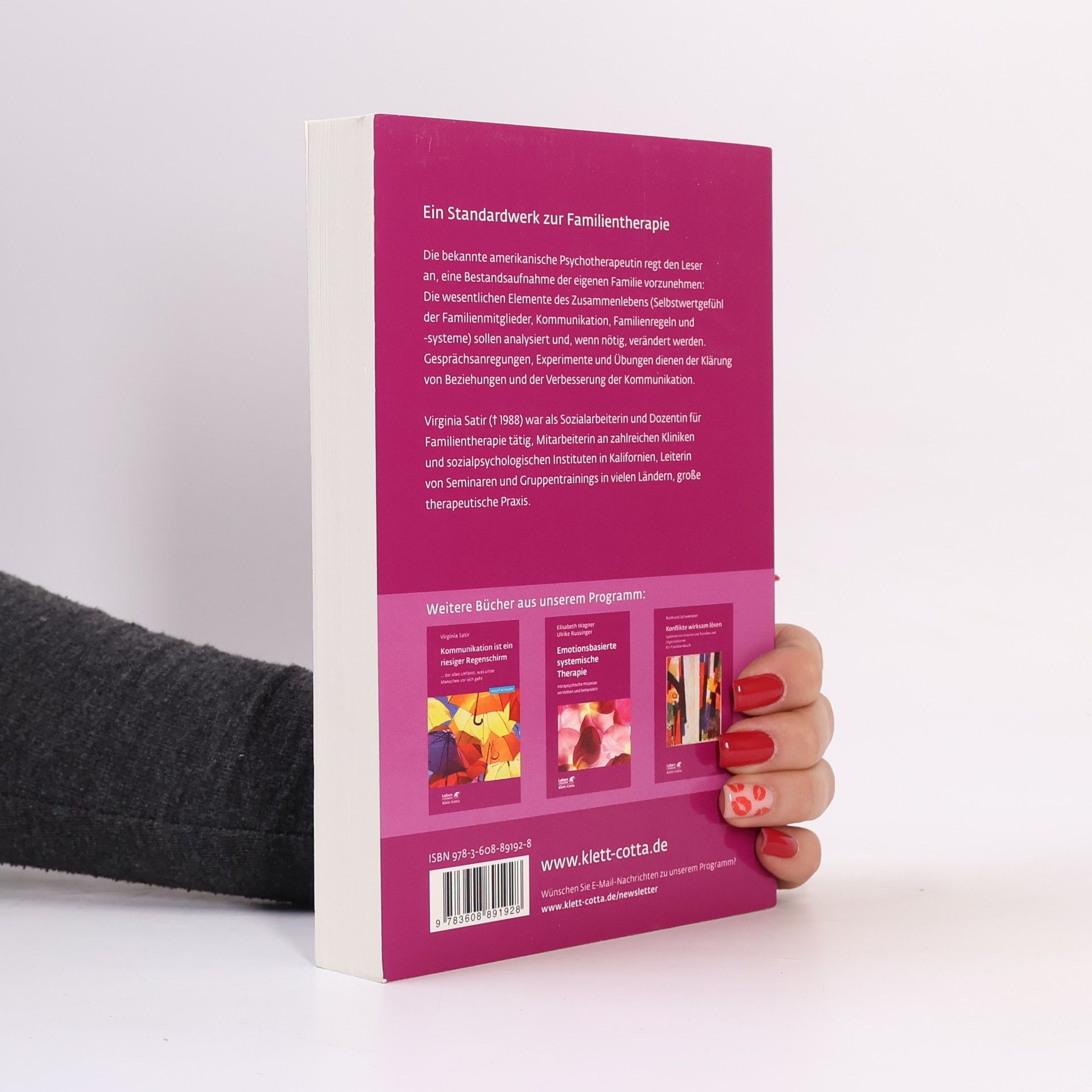 Die bekannte amerikanische Psychotherapeutin regt den Leser an, das Zusammenleben der eigenen Familie zu analysieren; sie zeigt, wie Gespräche, Experimente und Übungen die Beziehungen innerhalb und außerhalb der Familie verbessern. Ein Buch, das der Familie, in der die soziale Person geformt wird, Chancen einer gesunden Entwicklung zeigt, - das witzig, locker, aber nie platt geschrieben ist.