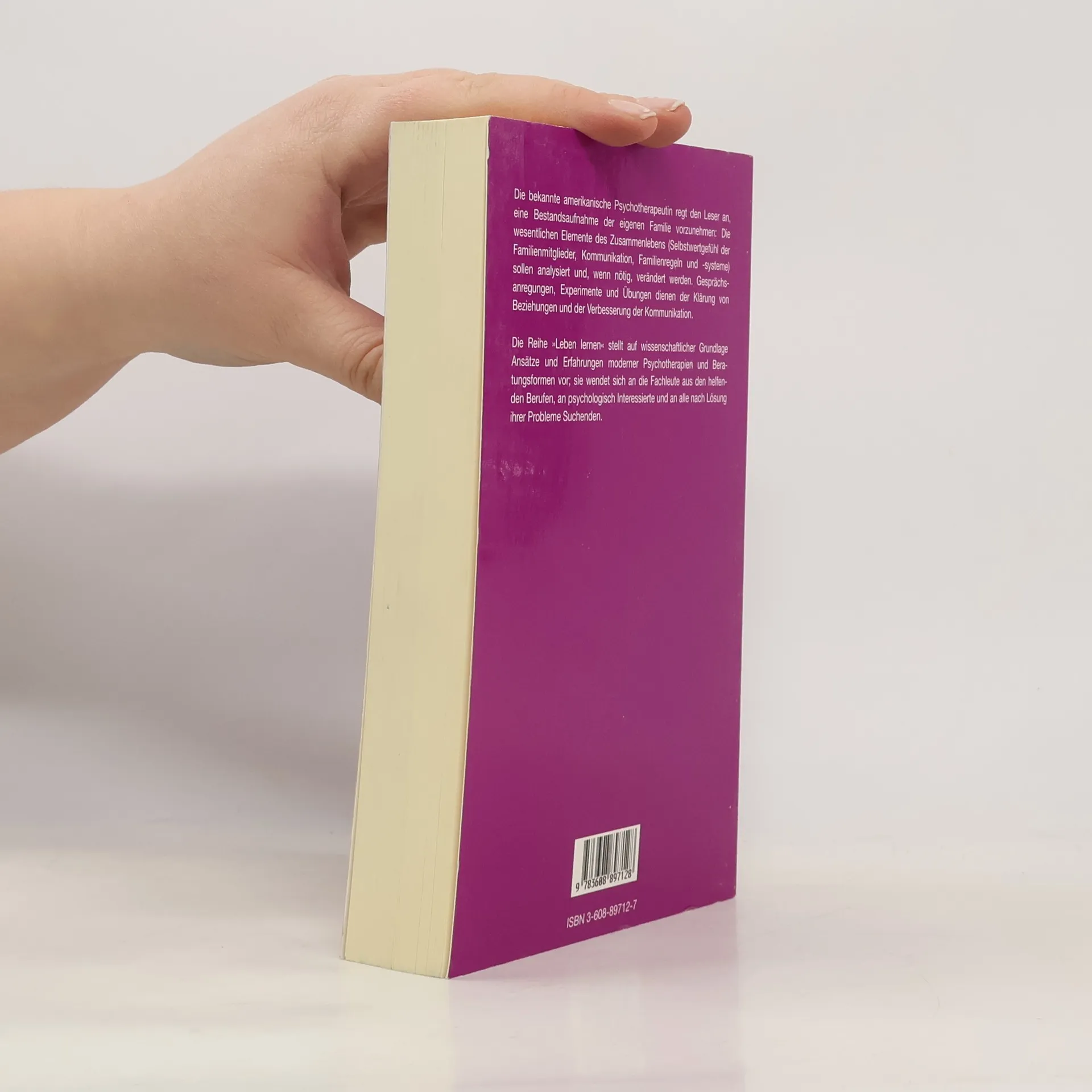 Die bekannte amerikanische Psychotherapeutin regt den Leser an, das Zusammenleben der eigenen Familie zu analysieren sie zeigt, wie Gespräche, Experimente und Übungen die Beziehungen innerhalb und außerhalb der Familie verbessern. Ein Buch, das der Familie, in der ja die soziale Person geformt wird, Chancen einer gesunden Entwicklung zeigt, - das witzig, locker, aber nie platt geschrieben ist.