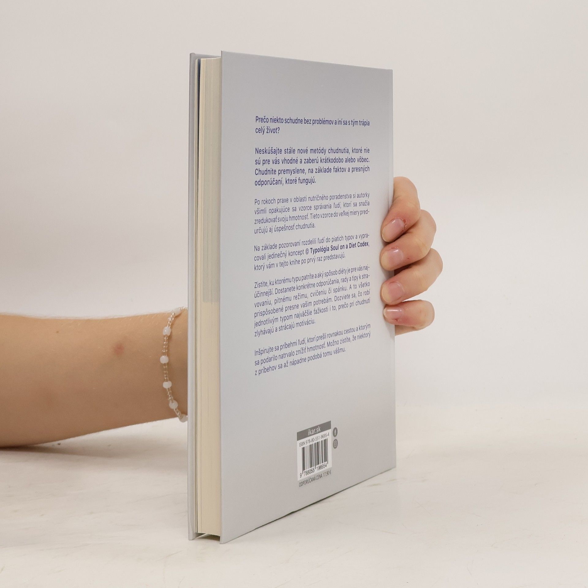 34 skutočných príbehov chudnutia z praxePrečo niekto schudne bez problémov a iní sa s tým trápia celý život?Neskúšajte stále nové metódy chudnutia, ktoré nie sú pre vás vhodné a zaberú krátkodobo, alebo vôbec. Chudnite premyslene, na základe faktov a presných odporúčaní, ktoré fungujú!Po rokoch praxe v oblasti nutričného poradenstva si autorky všimli opakujúce sa vzorce správania u ľudí, ktorí sa snažia zredukovať svoju hmotnosť. Tieto vzorce do veľkej miery predurčujú aj úspešnosť chudnutia.Na základe týchto pozorovaní rozdelili ľudí do piatich typov a vypracovali jedinečný koncept ©Typológia Soul on a Diet Codex, ktorý vám v tejto knihe po prvý raz predstavujú.Zistite, ku ktorému typu patríte a aký spôsob diéty je pre vás najúčinnejší. Dostanete konkrétne odporúčania, rady a tipy k stravovaniu, pitnému režimu, cvičeniu či spánku. A to všetko prispôsobené presne vašim potrebám. Dozviete sa, čo spôsobuje jednotlivým typom najväčšie ťažkosti i to, prečo pri chudnutí zlyhávajú a strácajú motiváciu.Inšpirujte sa príbehmi ľudí, ktorí prešli rovnakou cestou a podarilo sa im natrvalo znížiť svoju hmotnosť. Možno zistíte, že niektorý z nich sa až nápadne podobá tomu vášmu.
