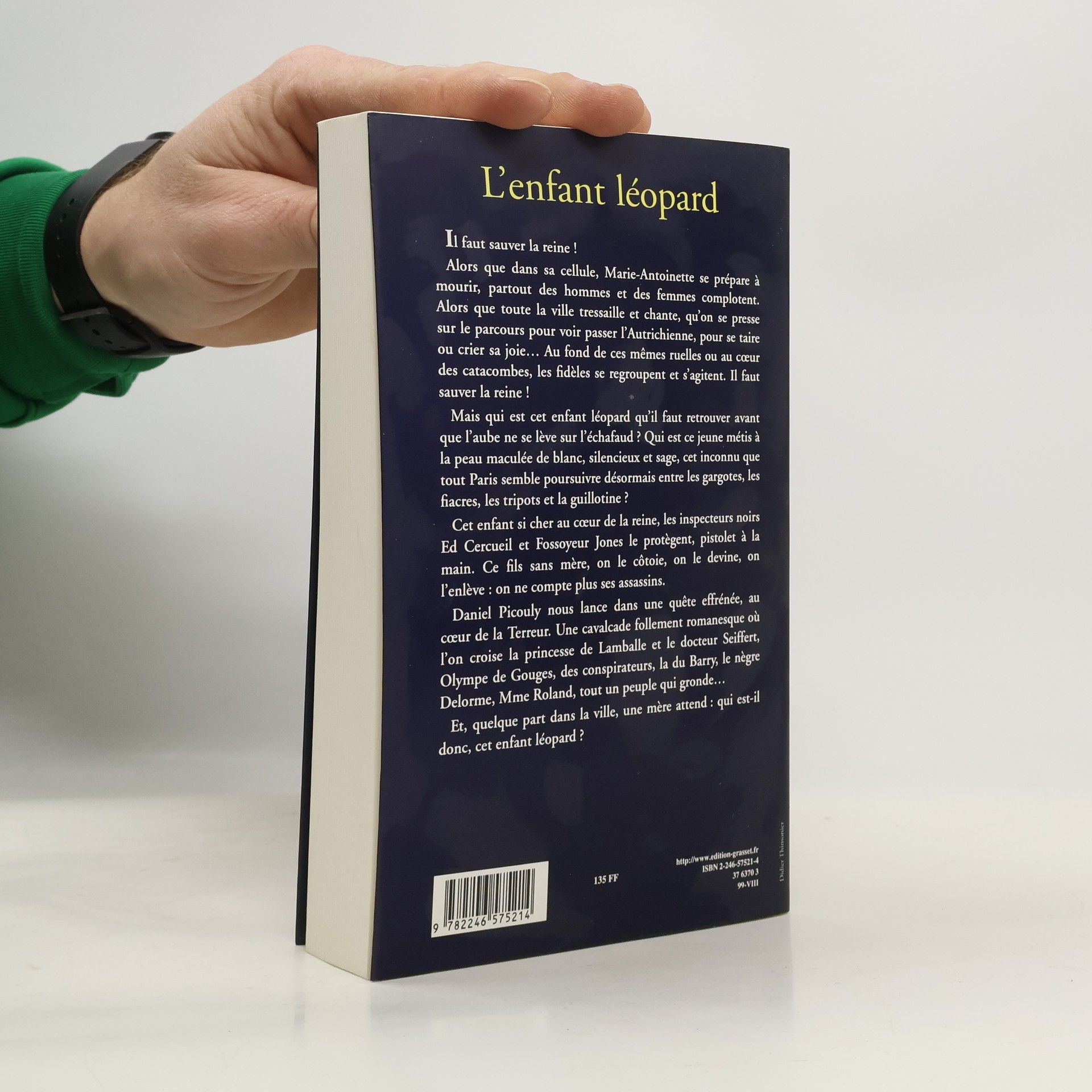 Il faut sauver la reine ! Alors que dans sa cellule, Marie-Antoinette se prépare a mourir, partout des hommes et des femmes complotent. Alors que toute la ville tressaille et chante, qu'on se presse sur le parcours pour voir passer l'Autrichienne, Pour se taire ou crier sa joie... Au fond de ces mêmes ruelles ou au cœur des catacombes, les fidèles se regroupent et s'agitent. Il faut sauver la reine ! Mais qui est cet enfant léopard qu'il faut retrouver avant que l'aube ne se lève sur l'échafaud ? Qui est ce jeune métis à la peau maculée de blanc, silencieux et sage, cet inconnu que tout Paris semble poursuivre désormais entre les gargotes, les fiacres, les tripots et la guillotine ? Cet enfant si cher au cœur de la reine, les inspecteurs noirs Ed Cercueil et Fossoyeur Jones le protègent, pistolet à la main. Ce fils sans mère, on le côtoie, on le devine, on l'enlève : on ne compte plus ses assassins. Daniel Picouly nous lance dans une quête effrénée, au cœur de la Terreur. Une cavalcade follement romanesque où l'on croise la princesse de Lamballe et le docteur Seiffert, Olympe de Gouges, des conspirateurs, la du Barry, le nègre Delorme, Mme Roland, tout un peuple qui gronde... Et, quelque part dans la ville, une mère attend : qui est-il donc, cet enfant léopard ?