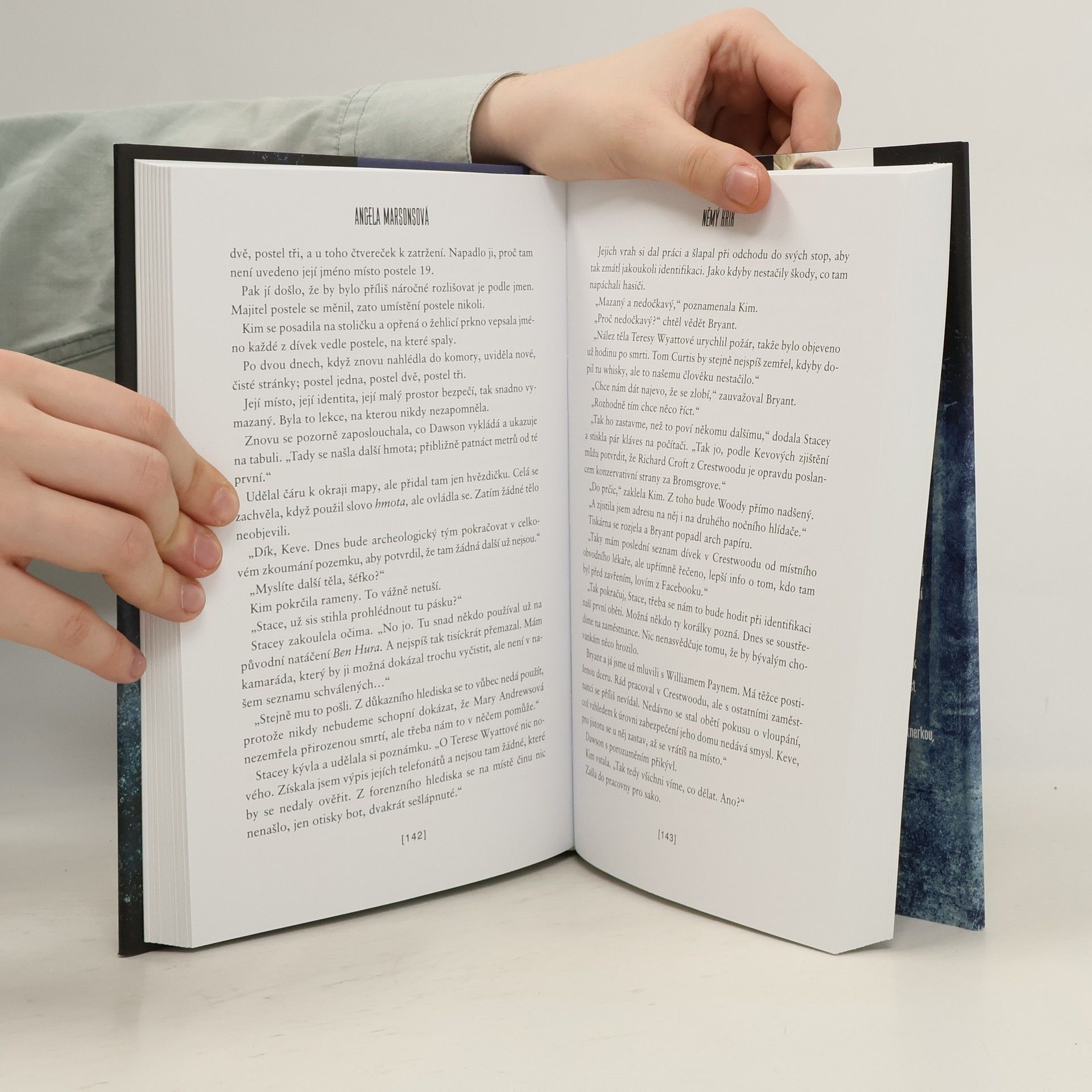 Ani ta nejtemnější tajemství nezůstanou pohřbená navždy… Pět postav stojí u mělkého hrobu. Jeden po druhém se vystřídali při jeho kopání. Jáma pro dospělého by zabrala víc času. Zmařili nevinný život, ale uzavřeli smlouvu a zpečetili ji krví. Po letech se středoanglické Black Country ocitá v šoku – nejprve je nalezena brutálně zabitá ředitelka místní chlapecké školy, následuje objev lidských ostatků u bývalého dětského domova. A další hrůzné zločiny… Detektiv inspektor Kim Stoneová si záhy uvědomí, že hledá zvrácenou osobu, jejíž vražedná pouť trvá už pár desetiletí. Že je třeba ji dopadnout, než znovu udeří. A že nezbývá než se co nejdřív vyrovnat s vlastními démony z minulosti. Protože jinak by už mohlo být příliš pozdě. „Ohromující!“ Mail on Sunday. Déle než měsíc vévodil Němý křik žebříčku bestsellerů britského Amazonu, na něm (i na americkém Amazonu) byl pátou nejprodávanější knihou roku 2015. Tento úspěch rázem katapultoval Angelu Marsonsovou mezi nejčtenější autory krimi v současnosti.