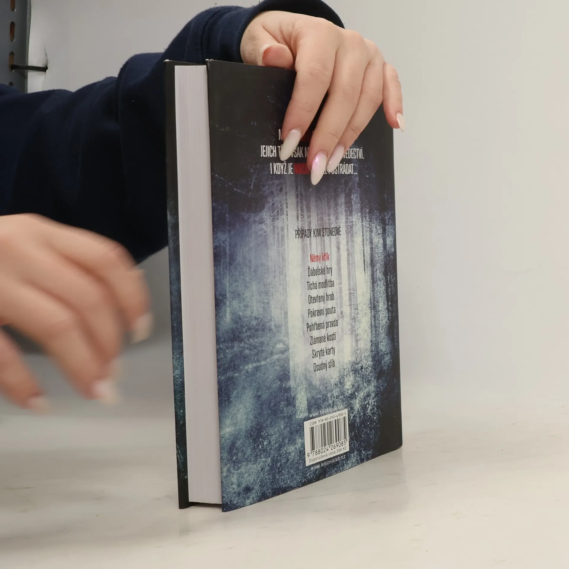 Déle než měsíc vévodil Němý křik žebříčku bestsellerů britského Amazonu. Odstartoval sérii (dnes již dvanáctidílnou), která vychází v 28 zemích a díky níž se Angela Marsonsová stala jednou z nejúspěšnějších současných britských spisovatelek krimi. Pět postav stojí u mělkého hrobu. Jeden po druhém se vystřídali při jeho kopání. Jáma pro dospělého by zabrala víc času. Zmařili nevinný život, ale uzavřeli smlouvu a zpečetili ji krví… Po letech se středoanglické Black Country ocitá v šoku – nejprve je nalezena brutálně zabitá ředitelka místní chlapecké školy, následuje objev lidských ostatků u bývalého dětského domova. A další hrůzné zločiny… Inspektorka Kim Stoneová si záhy uvědomí, že hledá někoho, jehož vražedná pouť trvá už desetiletí. Že ho musí dopadnout, než znovu udeří. A že se musí vyrovnat s vlastními démony z minulosti, protože jinak už může být pozdě. Protože ani ta nejtemnější tajemství nezůstanou pohřbená navždy…