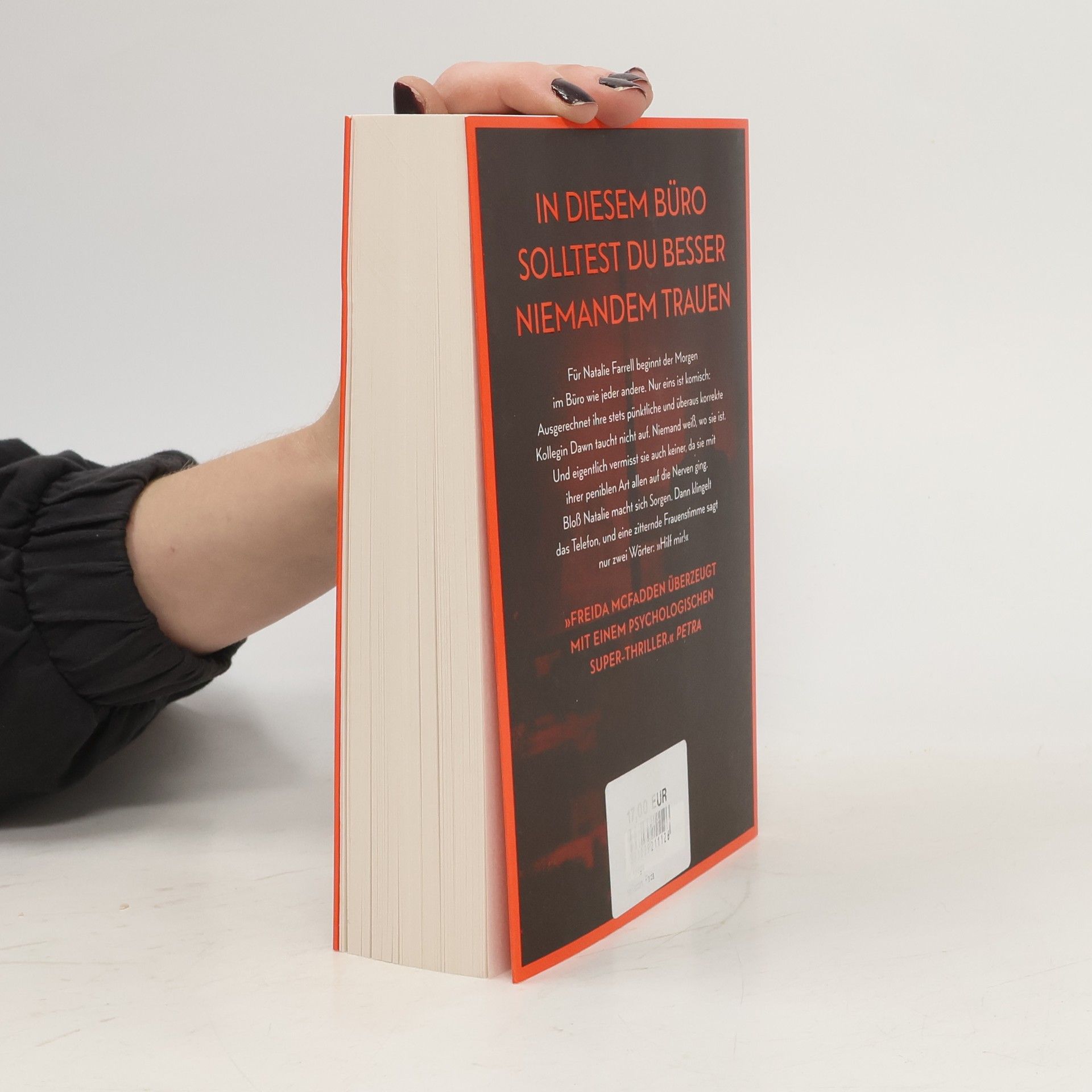 Zwei Frauen. Ein Büro. Ein schreckliches Verbrechen. Mit farbig gestaltetem Buchschnitt in limitierter Erstauflage Dawn Schiff ist seltsam. Darin sind sich ihre Kollegen einig. Sie sagt nie das Richtige. Sie hat keine Freunde. Aber sie ist jeden Morgen um Punkt 8:45 Uhr an ihrem Platz in der Firma, in der sie als Buchhalterin arbeitet. Bis sie eines Morgens nicht auftaucht. Dawns Kollegin Natalie Farrell wundert sich. Dann erhält sie einen anonymen Anruf und fährt zu Dawns Wohnung. Keine Spur von ihrer Kollegin. Doch Natalie bietet sich ein Bild des Grauens. Eins scheint bald klar: Jemand muss Dawn so sehr gehasst haben, dass er sie getötet hat. War es jemand aus ihrem Büro? Je mehr Natalie herausfindet, desto tiefer verstrickt sie sich selbst in ein Netz aus Lügen und Gewalt, aus dem es kein Entkommen gibt. Mit farbig gestaltetem Buchschnitt