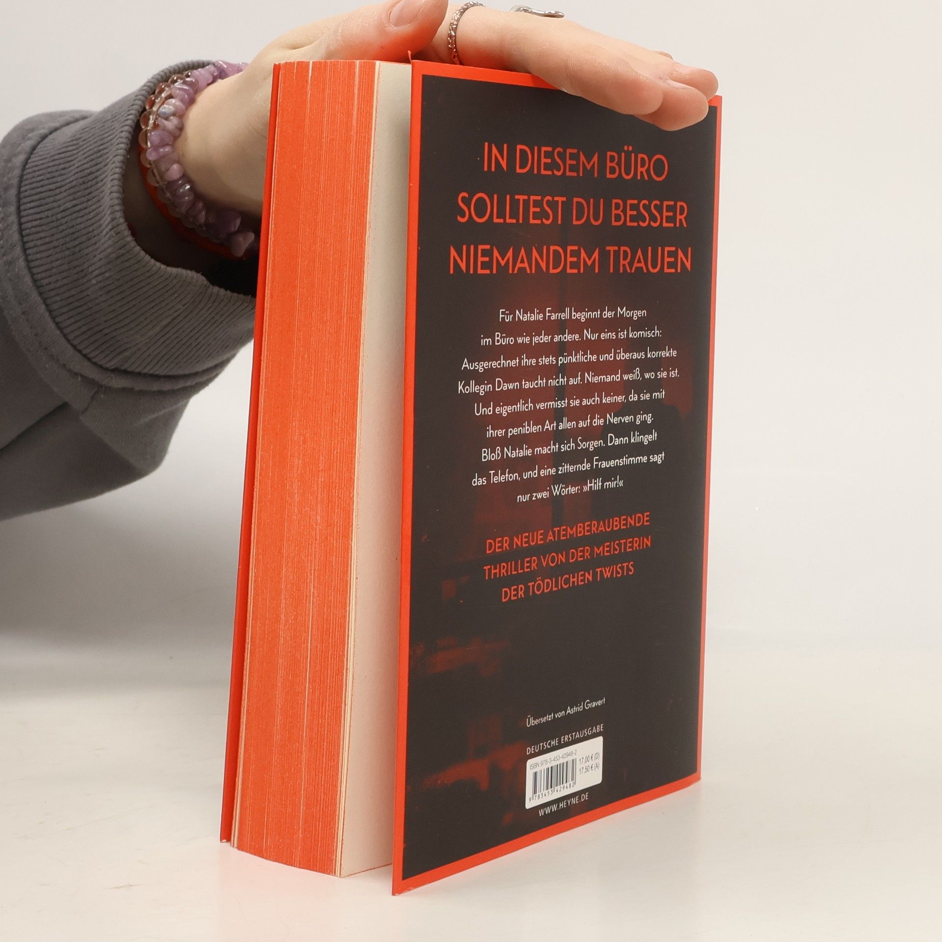 Zwei Frauen. Ein Büro. Ein schreckliches Verbrechen. Mit farbig gestaltetem Buchschnitt in limitierter Erstauflage Dawn Schiff ist seltsam. Darin sind sich ihre Kollegen einig. Sie sagt nie das Richtige. Sie hat keine Freunde. Aber sie ist jeden Morgen um Punkt 8:45 Uhr an ihrem Platz in der Firma, in der sie als Buchhalterin arbeitet. Bis sie eines Morgens nicht auftaucht. Dawns Kollegin Natalie Farrell wundert sich. Dann erhält sie einen anonymen Anruf und fährt zu Dawns Wohnung. Keine Spur von ihrer Kollegin. Doch Natalie bietet sich ein Bild des Grauens. Eins scheint bald klar: Jemand muss Dawn so sehr gehasst haben, dass er sie getötet hat. War es jemand aus ihrem Büro? Je mehr Natalie herausfindet, desto tiefer verstrickt sie sich selbst in ein Netz aus Lügen und Gewalt, aus dem es kein Entkommen gibt. Mit farbig gestaltetem Buchschnitt