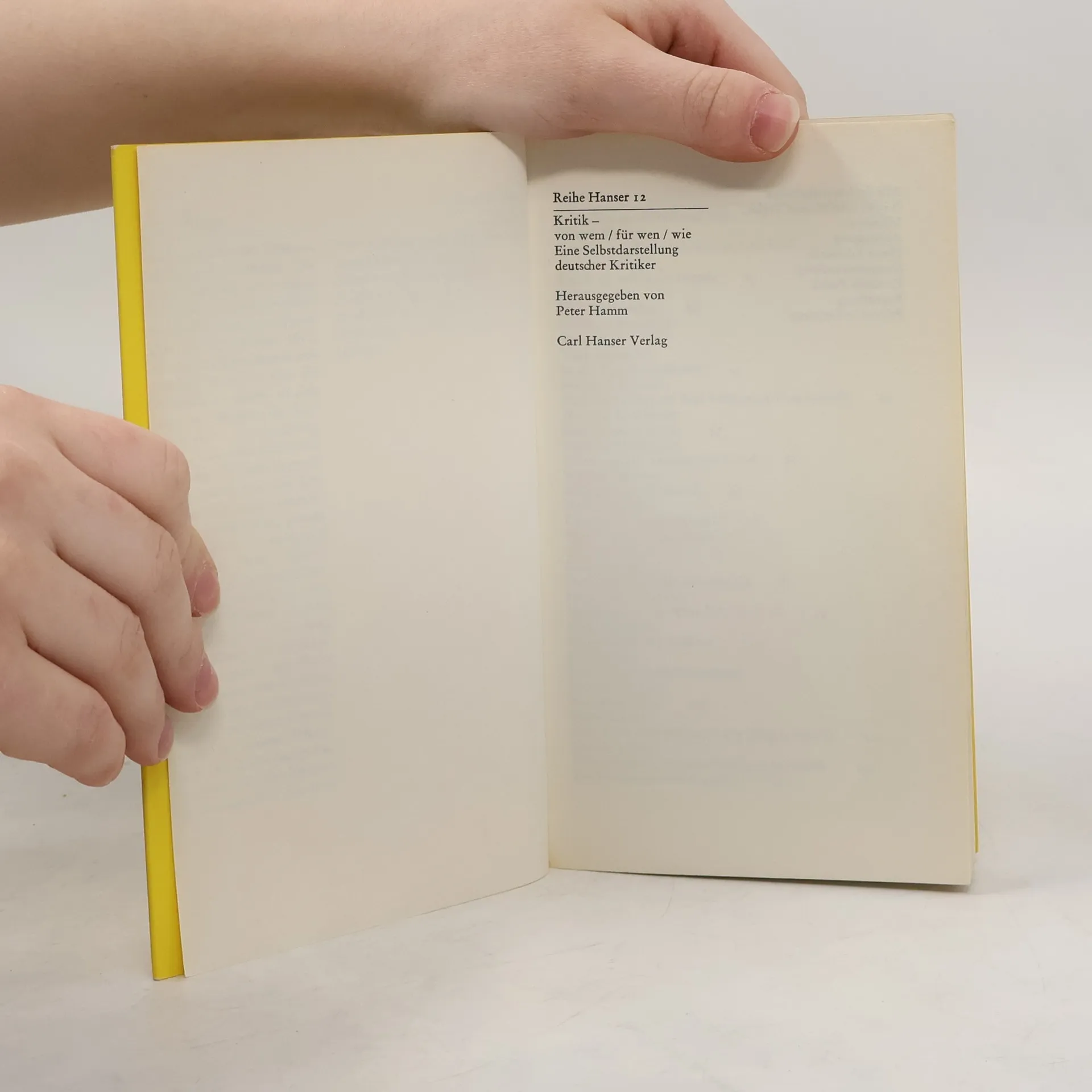 Kritik. von wem. für wen. wie. Eine Selbstdarstellung der Kritik, Reihe Hanser, Peter Hamm