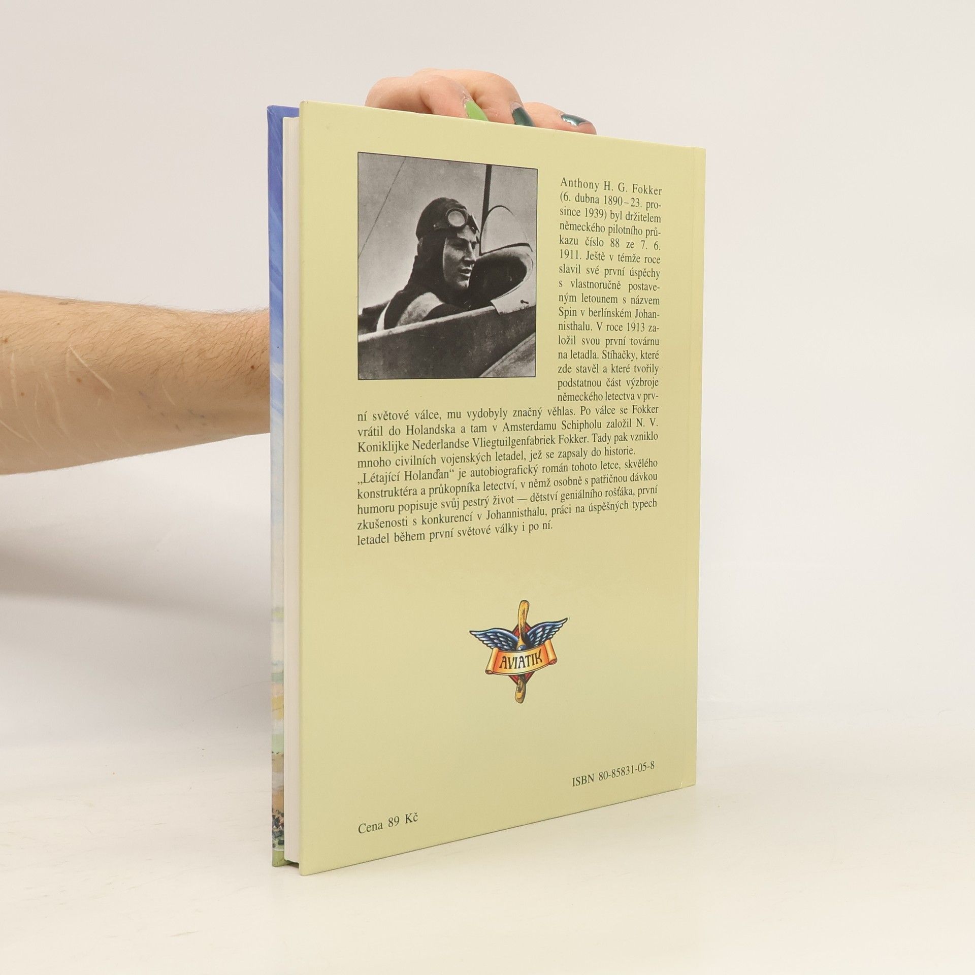 Anthony H. G. Fokker (6. dubna 1890 – 23. prosince 1939) byl držitelem německého pilotního průkazu číslo 88 ze 7. 6. 1911. Ještě v témže roce slavil své první úspěchy s vlastnoručně postaveným letounem s názvem Spin v berlínském Johannisthalu. V roce 1913 založil svou první továrnu na letadla. Stíhačky, které zde stavěl a které tvořily podstatnou část výzbroje německého letectva v první světové válce, mu vydobyly značný věhlas. Po válce s Fokker vrátil do Holandska a tam v Amsterdamu Schipholu založil N. V. Koniklijke Nederlandse Vliegtuilgenfabrick Fokker. Tady pak vzniklo mnoho civilních vojenských letadel, jež se zapsali do historie. „Létající Holanďan“ je autobiografický román tohoto letce, skvělého konstruktéra a průkopníka letectví, v němž osobně s patřičnou dávkou humoru popisuje svůj pestrý život – dětství geniálního rošťáka, první zkušenosti s konkurencí v Johannisthalu, práci na úspěšných typech letadel během první světové války i po ní.
