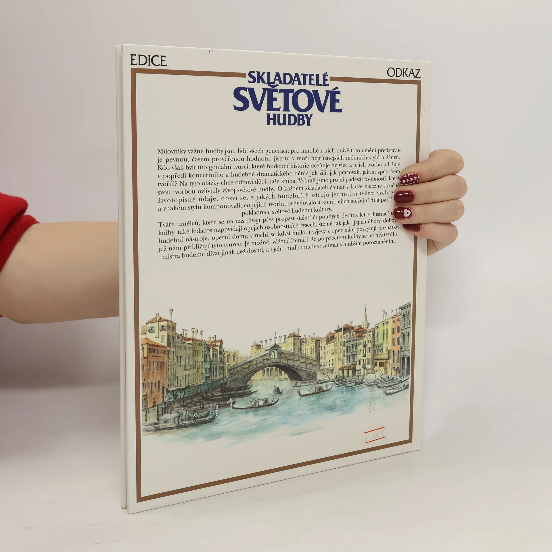 Tato kniha tištěná na křídovém papíře, formátu A4 potěší nejen milovníky vážné hudby, ale i studenty. O každém skladateli v knize nalezneme stručné životopisné údaje, styl komponování, co jejich tvorbu ovlivňovalo apod. Kniha je doplněna nádhernými ilustracemi.