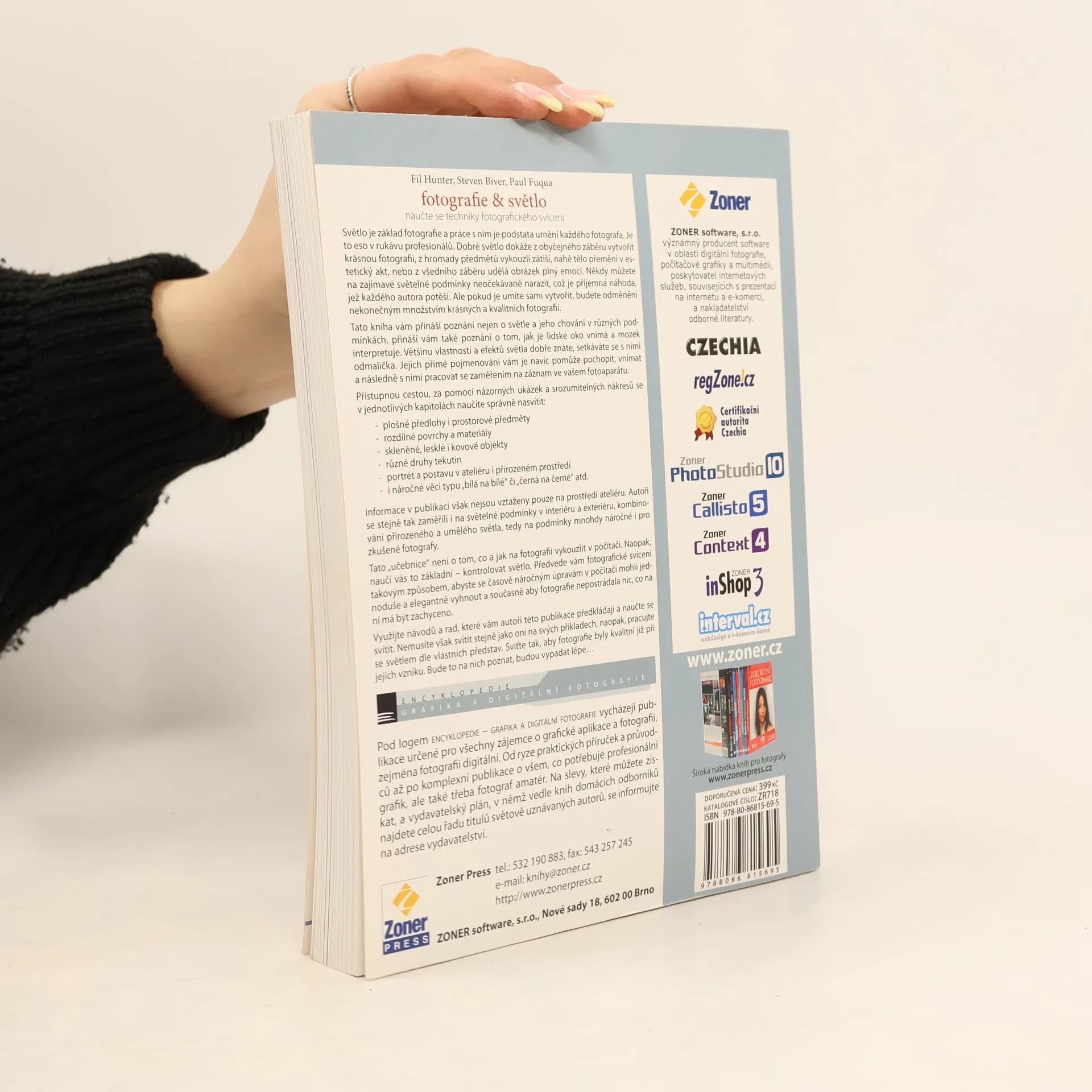 Světlo je základem fotografie a jeho ovládnutí je uměním každého fotografa. Zajímavé světelné podmínky mohou vzniknout náhodou, ale pokud je dokážete vytvořit, odmění vás krásnými snímky. Publikace přináší hluboké znalosti o světle a jeho chování v různých podmínkách, a také o tom, jak je vnímá lidské oko a jak je interpretuje mozek. Pomůže vám pochopit vlastnosti a efekty světla, které znáte od dětství, a naučí vás, jak s nimi pracovat při fotografování. Srozumitelně a pomocí ukázek se naučíte správně nasvítit různé objekty a situace, včetně složitějších scén jako „bílá na bílé“ či „černá na černé“. Kniha se nezaměřuje pouze na ateliérové podmínky, ale také na kombinaci přirozeného a umělého světla v interiérech a exteriérech, což představuje výzvu i pro zkušené fotografy. Tento průvodce vás naučí kontrolovat světlo a minimalizovat potřebu úprav v počítači, což povede k kvalitnějším fotografiím již při jejich pořízení. Využijte rady autorů a pracujte se světlem podle svých představ, aby vaše snímky vynikly.