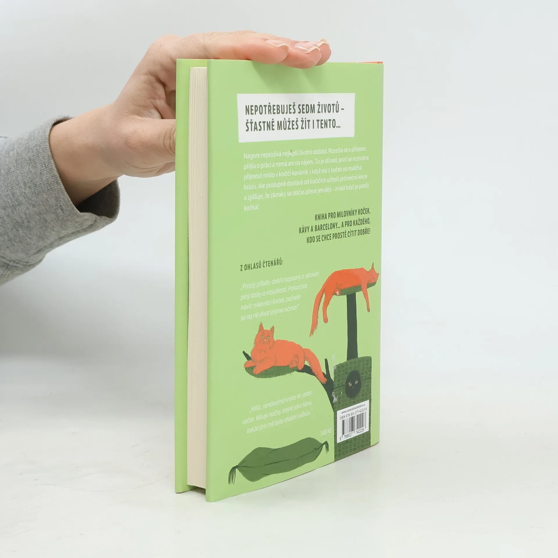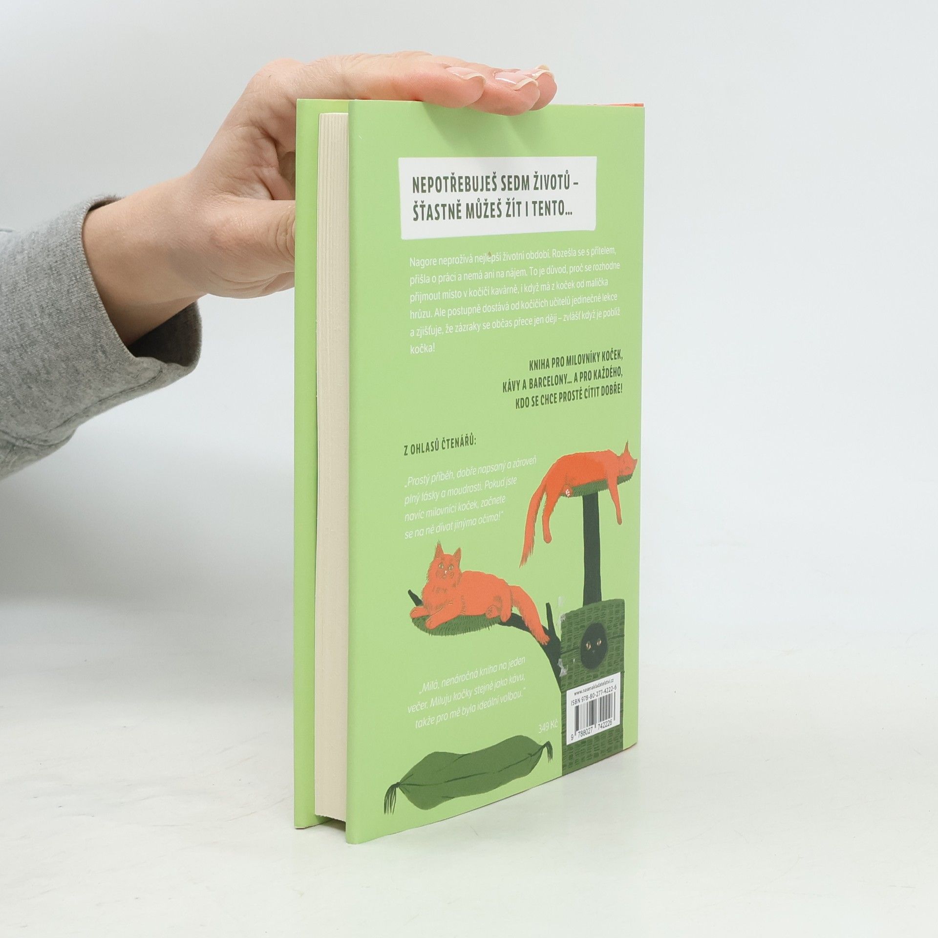 Od chvíle, kdy se rozešla s partnerem a přišla o zaměstnání, je život Nagore jedna velká pohroma. V peněžence jí zbývá posledních pár drobných, z nichž nepokryje ani nájem. V tu chvíli jí však dávná přítelkyně dohodí neobvyklou práci servírky v barcelonském Neko Café, sympatické malé kavárně, kde na své nové páníčky z řad zákazníků čeká sedm koček. Jelikož má Nagore z těchto tvorů už od dětství panickou hrůzu, po prvotním odmítnutí ji zoufalství donutí práci přijmout i proti své vůli. To, co zpočátku do její nejisté reality vtrhne jako uragán, se s přibývajícími dny ukazuje být život proměňující zkušeností. Každý ze sedmi mistrů Neko (japonsky „kočka“) jí poskytne klíč k umění žít, jako je klid, soustředění, flexibilita nebo ryzost srdce a další hodnoty, které začne uplatňovat v každodenním životě, dokud jí osud nepřipraví další nečekaný zvrat. Anna Sólyom napsala milý román, jenž čtenáře vede k poznání, že v životě je vždy možné najít své místo. Jeho děj se odehrává v jedné z kočičích kaváren, které jsou poslední dobou ve větších městech čím dál tím oblíbenější.