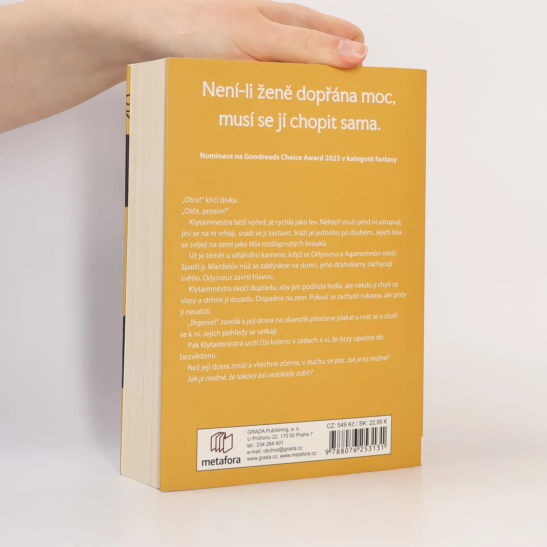 Královny se dělí na ty nenáviděné a ty zapomenuté. A ty nejsi žena, která hodlá zmizet v propadlišti času. Narodila ses králi, provdali tě za tyrana. Bezmocně přihlížíš, jak pro pouhý závan větru, pro přízeň bohů obětuje vaši nejstarší dceru. Není to zdaleka poprvé, kdy ti vzal to,co je ti nejdražší. Pak po mnoho let sleduješ, jak válčí na vzdáleném pobřeží, a při životě tě drží jen myšlenka na pomstu. Tenhle život sis nezasloužila. Nenecháš se zlomit. A pomalu plánuješ. Když se vrátí, musíš se rozhodnout. Usmíření znamená potupu, odplata jistou smrt. Vyčkáváš a doufáš, že teď bohové pomohou tobě. Už dávno jsi totiž pochopila, co ostatním uniká: Pokud ti není dopřána moc, musíš si ji vzít sama