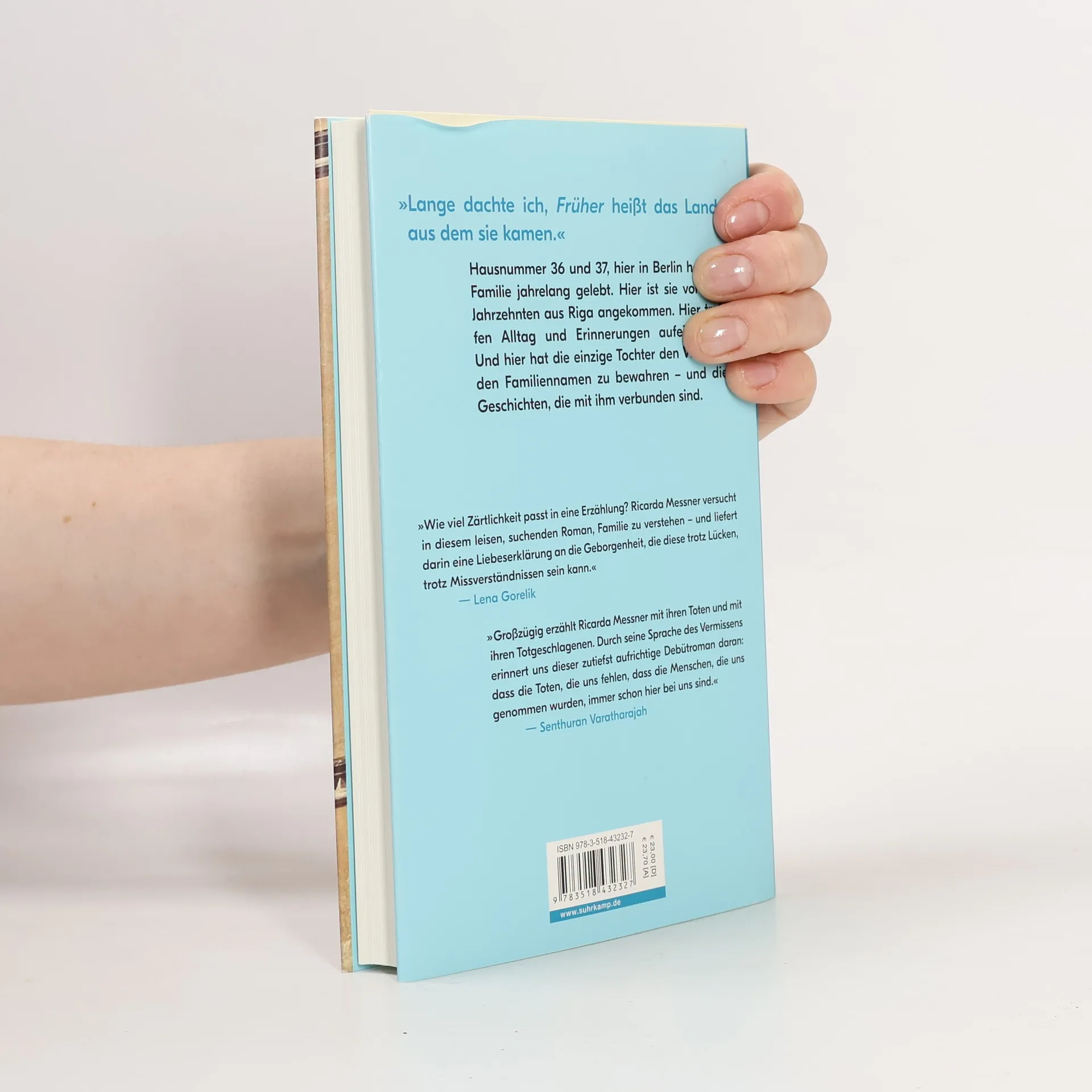 »Lange dachte ich, Früher heißt das Land, aus dem sie kamen.« Hausnummer 36 und 37, hier in Berlin haben sie jahrelang in direkter Nachbarschaft gelebt. Als Kind spielte die Enkeltochter Tischtennis auf dem Glastisch im Wohnzimmer der Großeltern. Als Erwachsene löst sie deren Wohnung schließlich auf, bringt Besteck, Töpfe und Musikkassetten nach nebenan zu sich. Und sie will noch etwas bewahren: Levitanus, den Familiennamen. Der Wunsch, den Namen wieder anzunehmen, begleitet sie nicht nur im Alltag, sondern führt sie auch nach Riga. Sie folgt den Worten ihres Urgroßvaters Salomon und findet ein Fenster im ehemaligen Rigaer Ghetto, das eng mit ihrer Familiengeschichte verknüpft ist – und sie zeichnet die Bewegungen von vier Generationen nach, vom sowjetischen Lettland der siebziger Jahre bis nach Deutschland. Ricarda Messner erzählt in ihrem Debütroman vom Ort ihrer Erinnerungen, kehrt immer wieder zurück zum Leben in zwei Wohnungen, nähert sich Verlusten und Lücken, verbindet Heute und Gestern. Wo der Name wohnt lässt so zärtlich wie klar eine Familie aufleben und bewahrt ihre Geschichten.