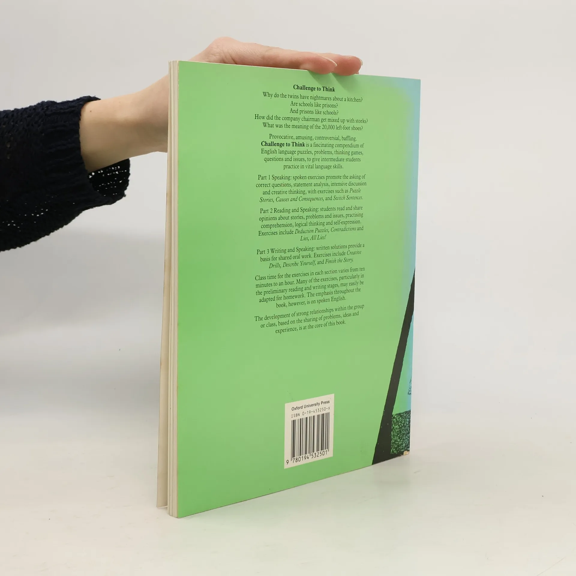 Provocative, amusing, controversial, blaffling. Challenge to think is a fascinating compendium of English language puzzles, problems, thinking games, questions and issues, to give intermediate students practice in vital language skills. Three parts : speaking; reading and speaking; writing and speaking