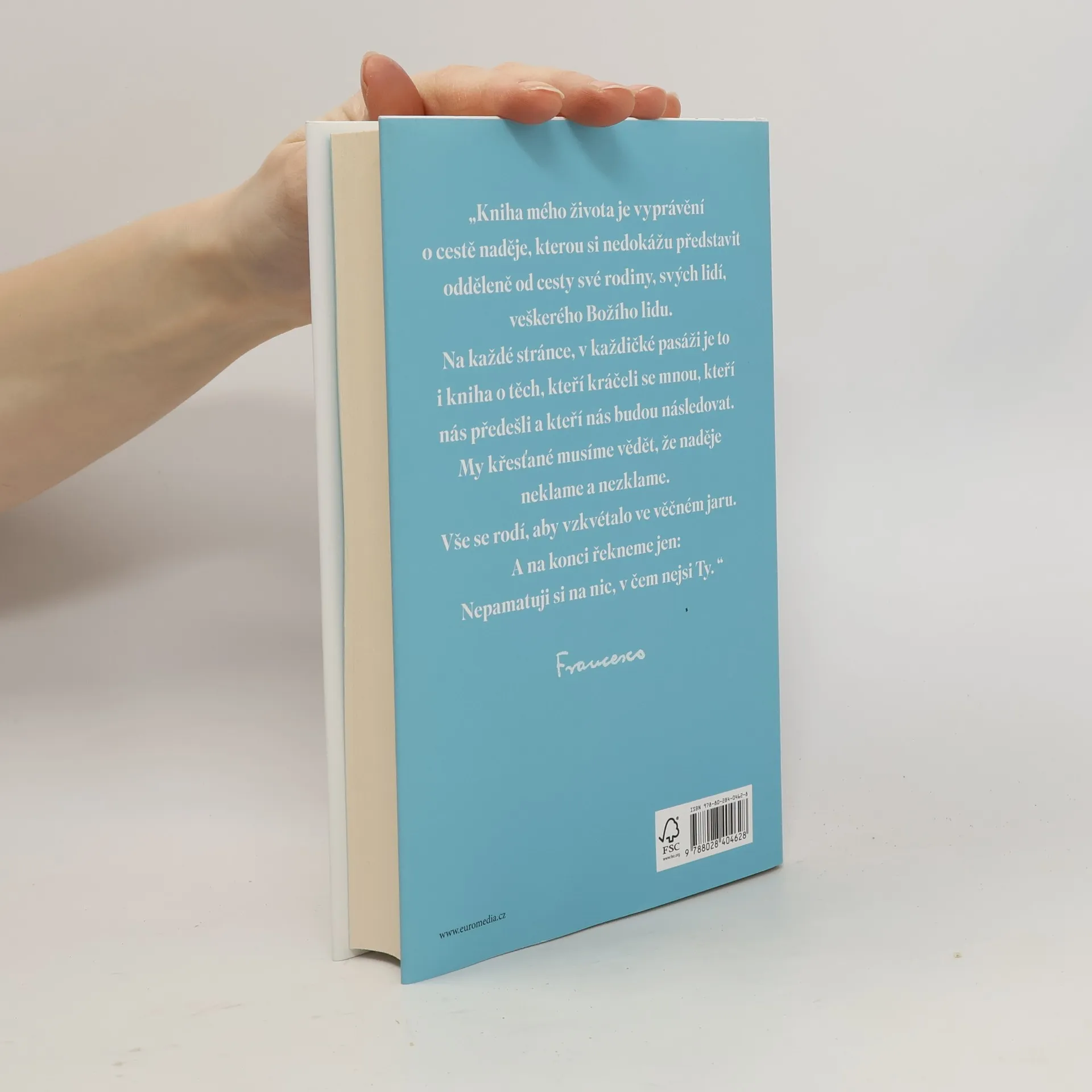 Jediná oficiální autobiografie papeže Františka. Papež František se ohlíží za svým pozoruhodným životem, přibližuje své dětství i dospívání a události, které ho přivedly k volbě životního poslání. S odvahou a upřímností se věnuje i zásadním tématům současnosti, jako je válkaa mír, migrace, environmentální krize, postavení žen, sexualita, technologický rozvoj či budoucnost církve. Knihu doplňují vzácné fotografie, včetně soukromých a nepublikovaných materiálů.