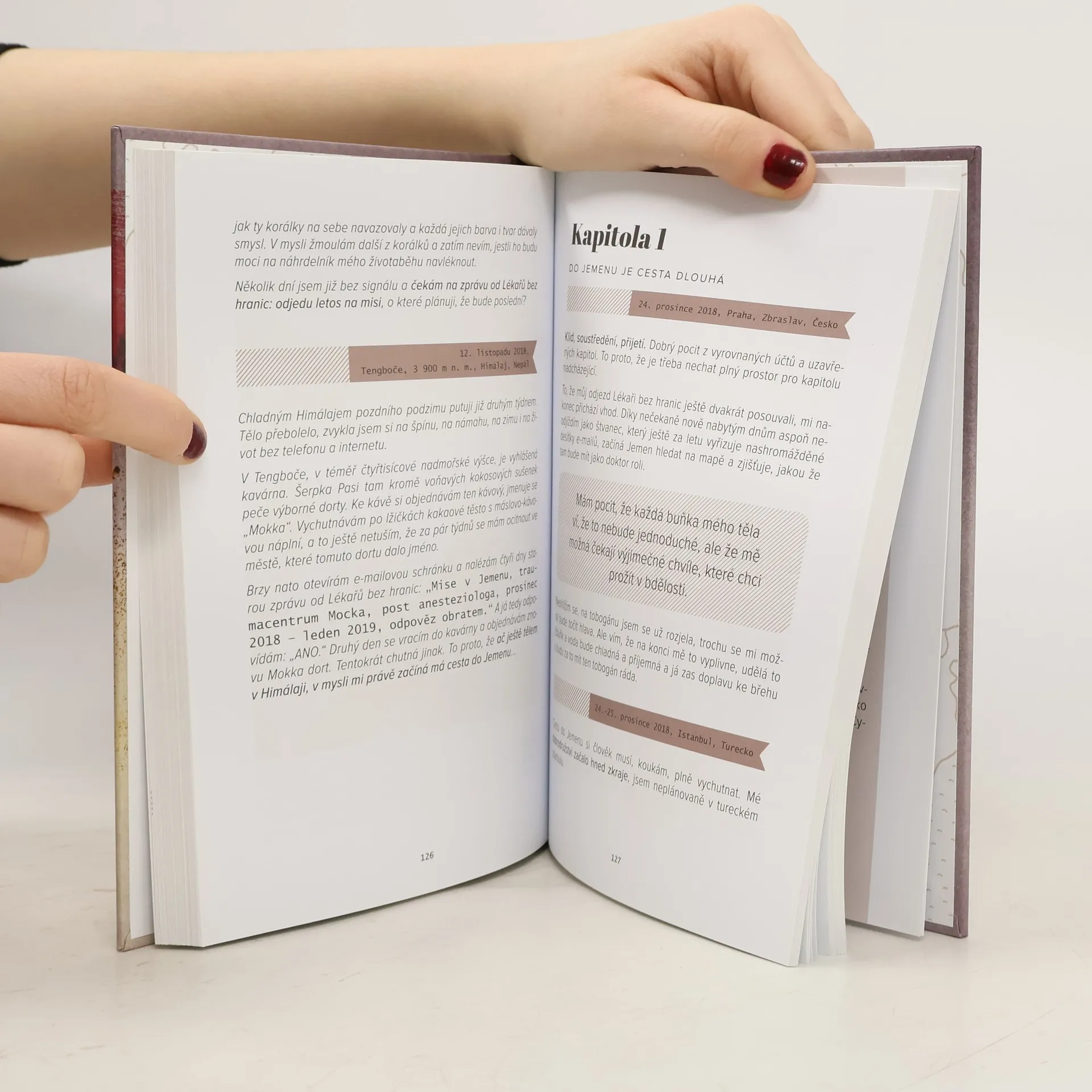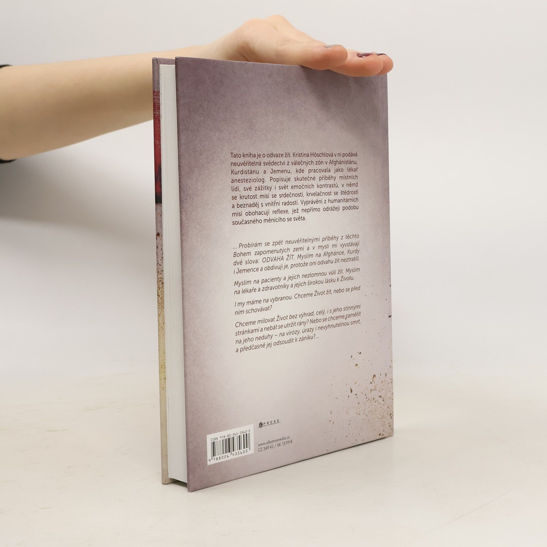 Osobní svědectví lékařky bez hranic. Tam, kde se beznaděj střetává s vnitřní radostí. Svědectví lékařky ve válečných zónách. Tato kniha je o odvaze žít. Kristina Höschlová v ní podává neuvěřitelná svědectví z válečných zón v Afghánistánu, Kurdistánu a Jemenu, kde pracovala jako lékař-anesteziolog. Popisuje skutečné příběhy místních lidí, své zážitky i svět emočních kontrastů, v němž se krutost mísí se srdečností, krvelačnost se štědrostí a beznaděj s vnitřní radostí. Vyprávění z humanitárních misí obohacují reflexe, jež nepřímo odrážejí podobu současného měnícího se světa.
