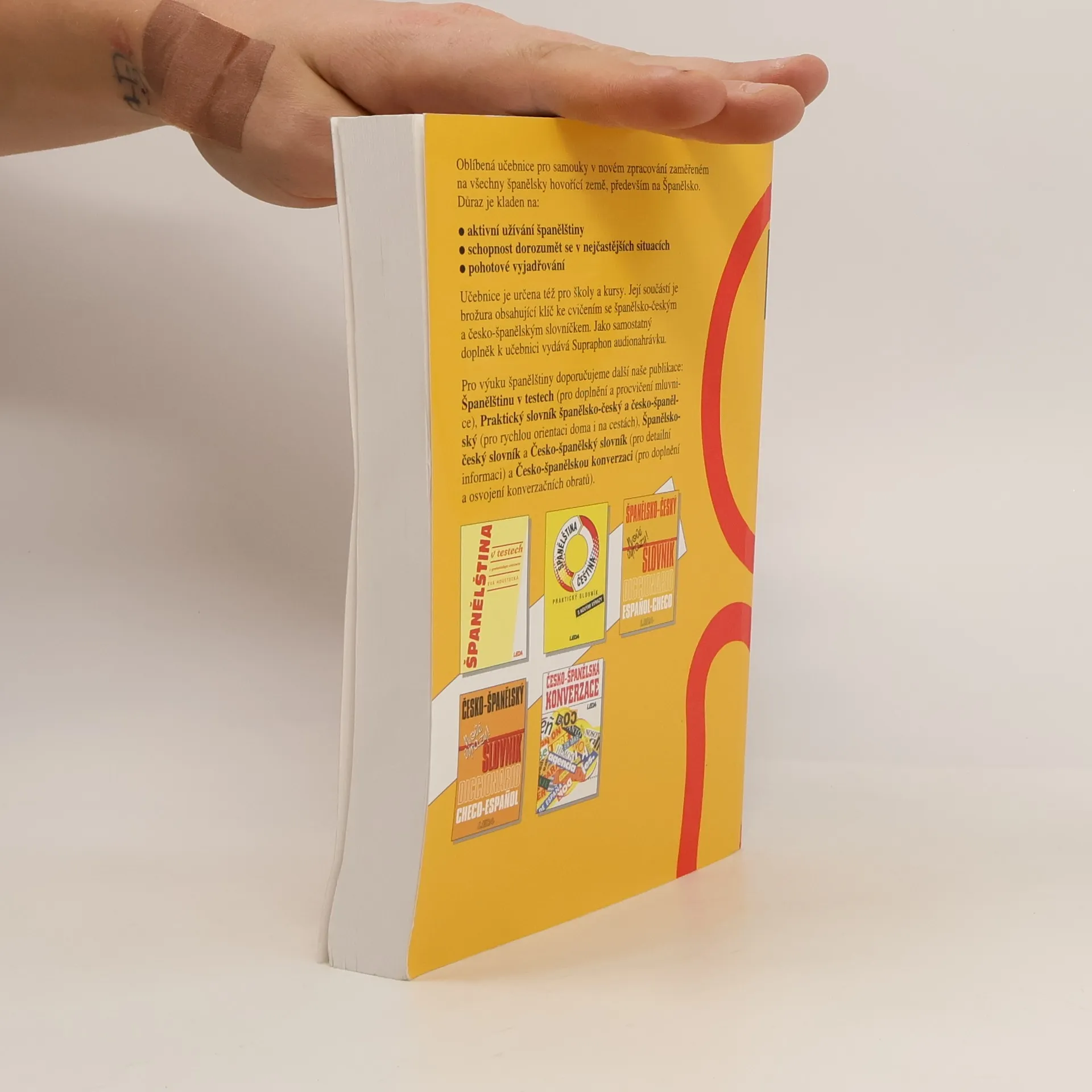 Oblíbená učebnice pro samouky v novém zpracování zaměřené na všechny španělsky hovořící země, především na Španělsko. Důraz je kladen na: . aktivní užívání španělštiny . schopnost dorozumět se v nejčastějších situacích . pohotové vyjadřování Učebnice je určena též pro školy a kursy. Její součástí je brožura obsahující klíč ke cvičením (119 s.) se španělsko-českým a česko-španělským slovníčkem. Jako samostatný doplněk k učebnici vydává Supraphon audionahrávku.