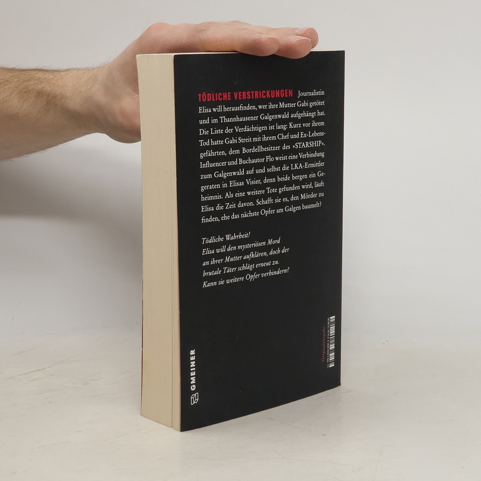 Journalistin Elisa will herausfinden, wer ihre Mutter Gabi getötet und im Thannhausener Galgenwald aufgehängt hat. Die Liste der Verdächtigen ist lang: Kurz vor ihrem Tod hatte Gabi Streit mit ihrem Chef und Ex-Lebensgefährten, dem Bordellbesitzer des „STARSHIP“. Influencer und Buchautor Flo weist eine Verbindung zum Galgenwald auf und selbst die LKA-Ermittler geraten in Elisas Visier, denn beide bergen ein Geheimnis. Als eine weitere Tote gefunden wird, läuft Elisa die Zeit davon. Schafft sie es, den Mörder zu finden, ehe das nächste Opfer am Galgen baumelt?