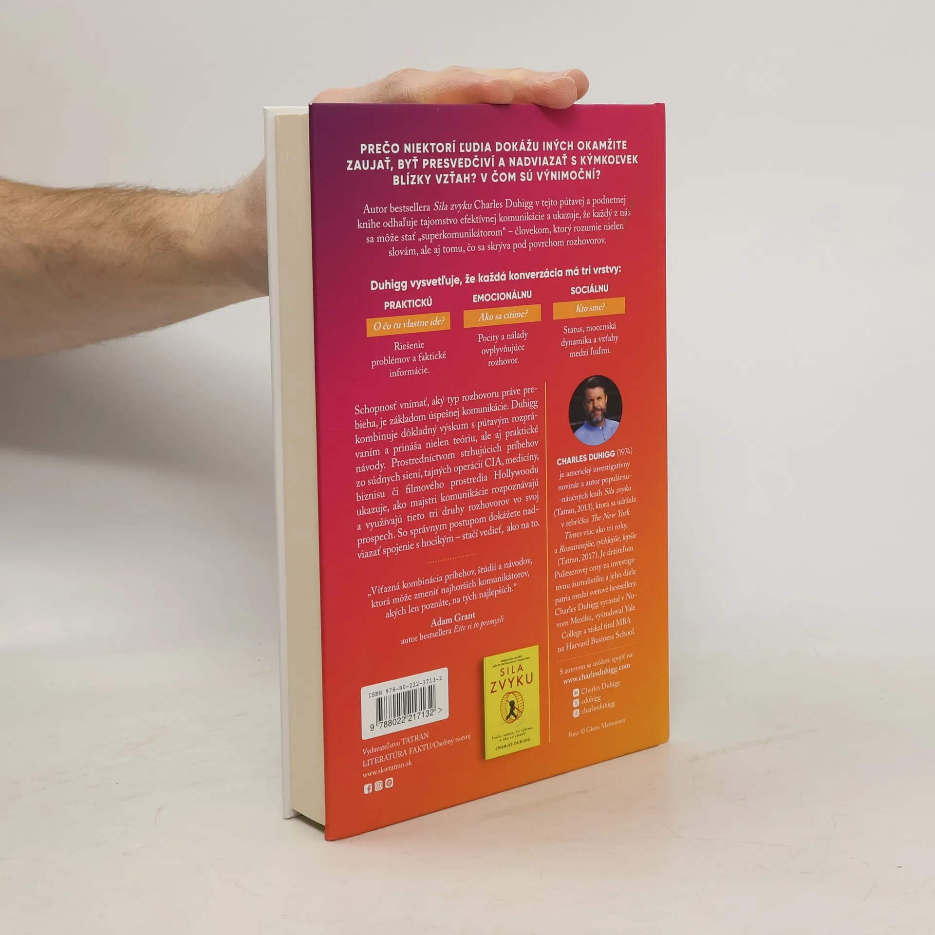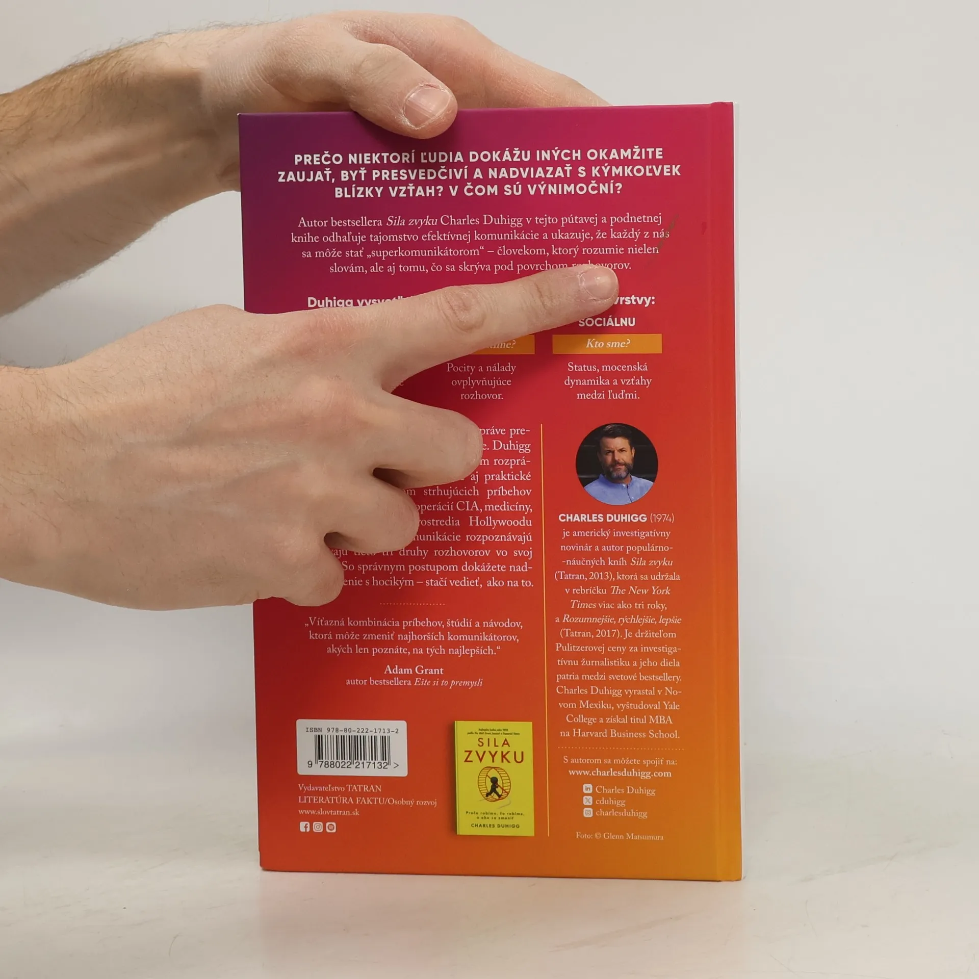 Od autora bestsellera Sila zvyku prichádza prelomová kniha o superkomunikátoroch – ľuďoch, ktorí vedia doviesť rozhovor k úspešnému záveru. Dokážu hovoriť o ťažkých témach bez toho, aby ostatných urazili. Vedia, ako dosiahnuť, aby sa diskutujúci cítili uvoľnene a podelili sa o to, čo si myslia. Ako to robia?Duhigg odhaľuje, že každá konverzácia prebieha na troch úrovniach: praktickej (O čo tu vlastne ide?), emocionálnej (Ako sa cítime?) a sociálnej (Kto sme?). Ak nevieme, v ktorej rovine sa rozhovor odohráva, môžeme stratiť spojenie s druhou stranou.Autor ukazuje na príbehoch zo súdnych siení, tajných operácií CIA, firemných porád či scenárov úspešných televíznych seriálov, ako rozpoznať jednotlivé druhy rozhovorov a ako ich s prehľadom zvládnuť. Dozvieme sa, prečo niektorí ľudia dokážu presvedčiť, upokojiť či motivovať druhých, zatiaľ čo iní narážajú na nepochopenie a odpor.Superkomunikátori nie sú len knihou o reči – sú návodom na to, ako byť vypočutý, ako skutočne počúvať a ako vytvárať hlboké spojenia s ostatnými. Pretože so správnymi nástrojmi sa môžeme prepojiť s kýmkoľvek.Finalista prestížnej ceny SABEW za najlepšiu biznis knihu.