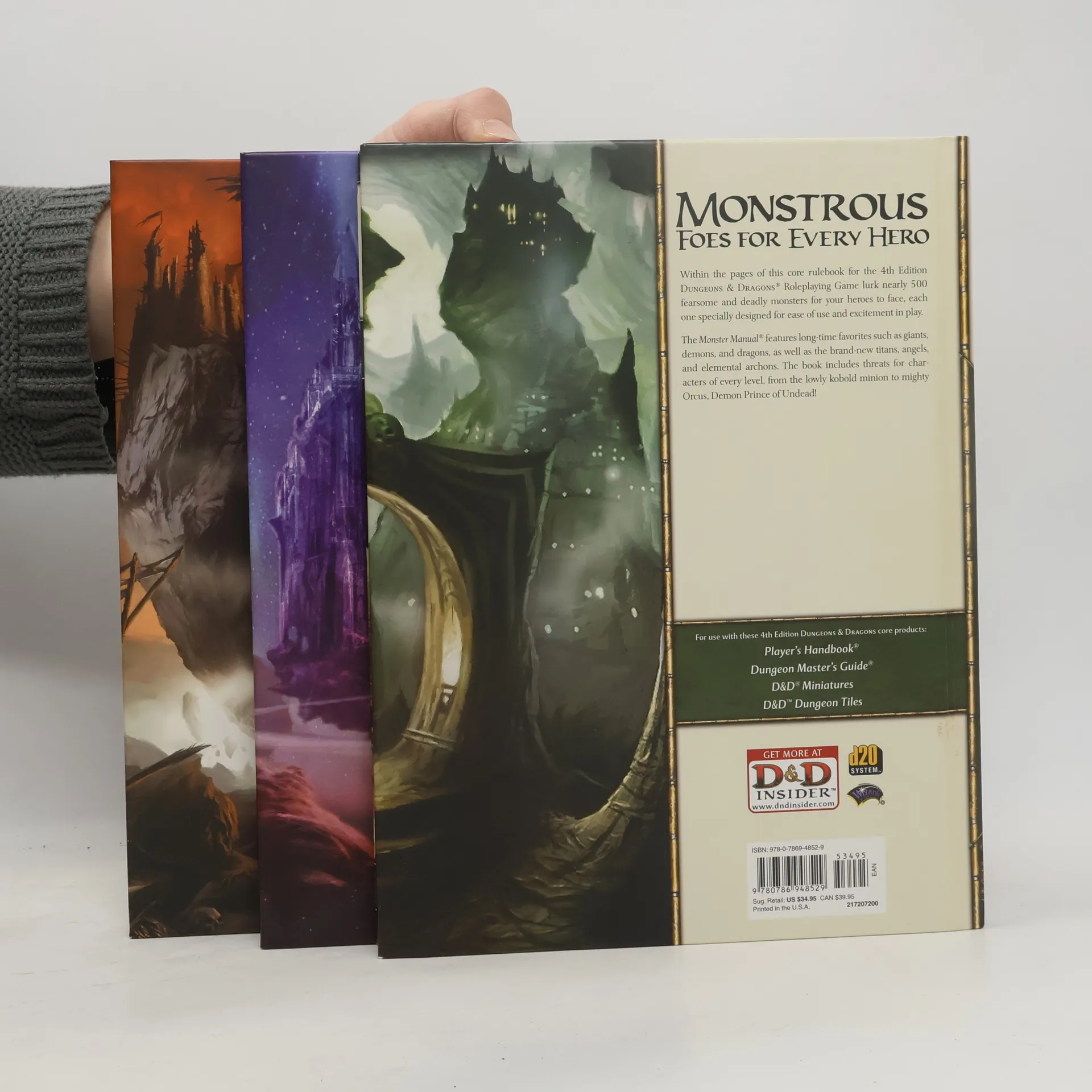 All three 4th Edition core rulebooks in one handsome slipcase. The Dungeons & Dragons Roleplaying Game has defined the medieval fantasy genre and the tabletop RPG industry for more than 30 years. In the D&D game, players create characters that band together to explore dungeons, slay monsters, and find treasure. The 4th Edition D&D rules offer the best possible play experience by presenting exciting character options, an elegant and robust rules system, and handy storytelling tools for the Dungeon Master. This gift set provides all three 4th Edition Dungeons & Dragons core rulebooks (Player's Handbook, Dungeon Master's Guide, and Monster Manual) in a handsome slipcase that looks great on any bookshelf.