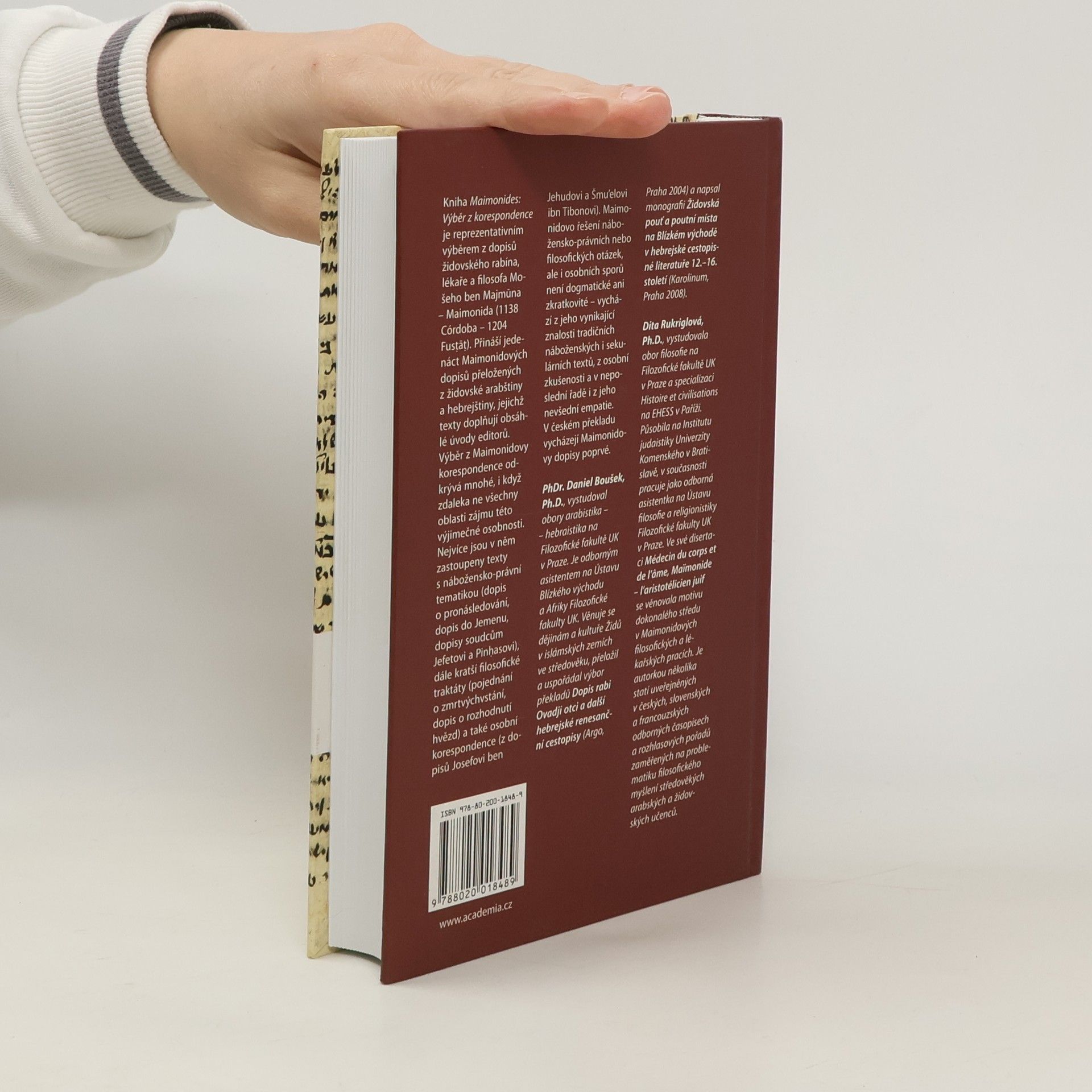 Zo židovskej arabštiny a hebrejštiny přeložili, k vydaniu pripravili a úvodné štúdie napísali Daniel Boušek a Dita Rukriglová. Publikácia je reprezentatívnym výberom jedenástich listov židovského rabína, lekára a filozofa Mošeho ben Majmūna – Maimonida (1138 Córdoba – 1204 Fustāt). Najviac sú zastúpené texty s nábožensko-právnou tematikou (list o prenasledovaní, list do Jemenu, listy sudcom Jefetovi a Pinhasovi), ďalej kratšie filozofické traktáty (pojednanie o zmŕtvychvstaní, list o rozhodnutí hviezd) a tiež osobná korešpondencia (z listov Josefovi ben Jehudovi a Šmu’elu ibn Tibonovi).