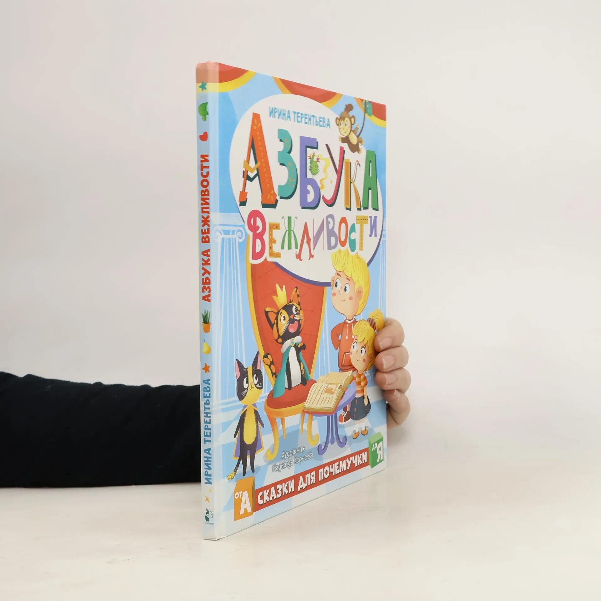 "Азбука - главная книга, которая вводит ребенка в огромный мир букв, слов, мировой литературы. Очень важно, чтобы первое знакомство с буквами было успешным, понравилось малышу, вдохновило его пройти непростой путь формирования навыка чтения. В этой книге вместе с непоседливыми ребятами Ярославом и Василисой и говорящей кошечкой Росей малыши отправятся в удивительный мир Вежливграда, чтобы спасти его от происков злого волшебника и его ужасных заклятий. Захватывающие приключения и полезные задания, придуманные психологом и сказкотерапевтом Ириной Терентьевой помогут малышам научиться хорошим манерам. Через форму волшебной истории ребята легко усвоят правила поведения, станут добрыми и отзывчивыми и полюбят чтение. Красочные иллюстрации Надежды Корнеевой перенесут в мир детства" --Colophon.