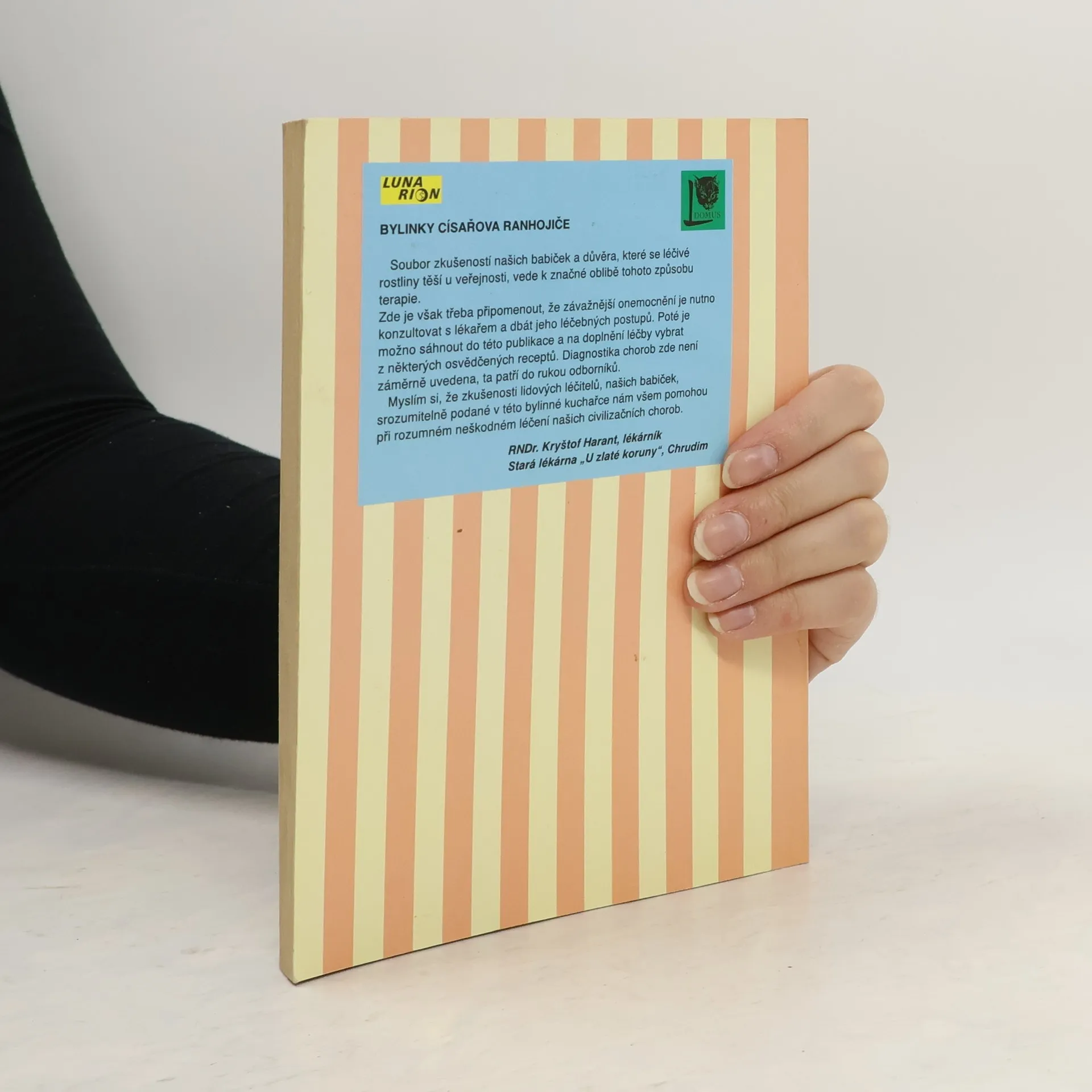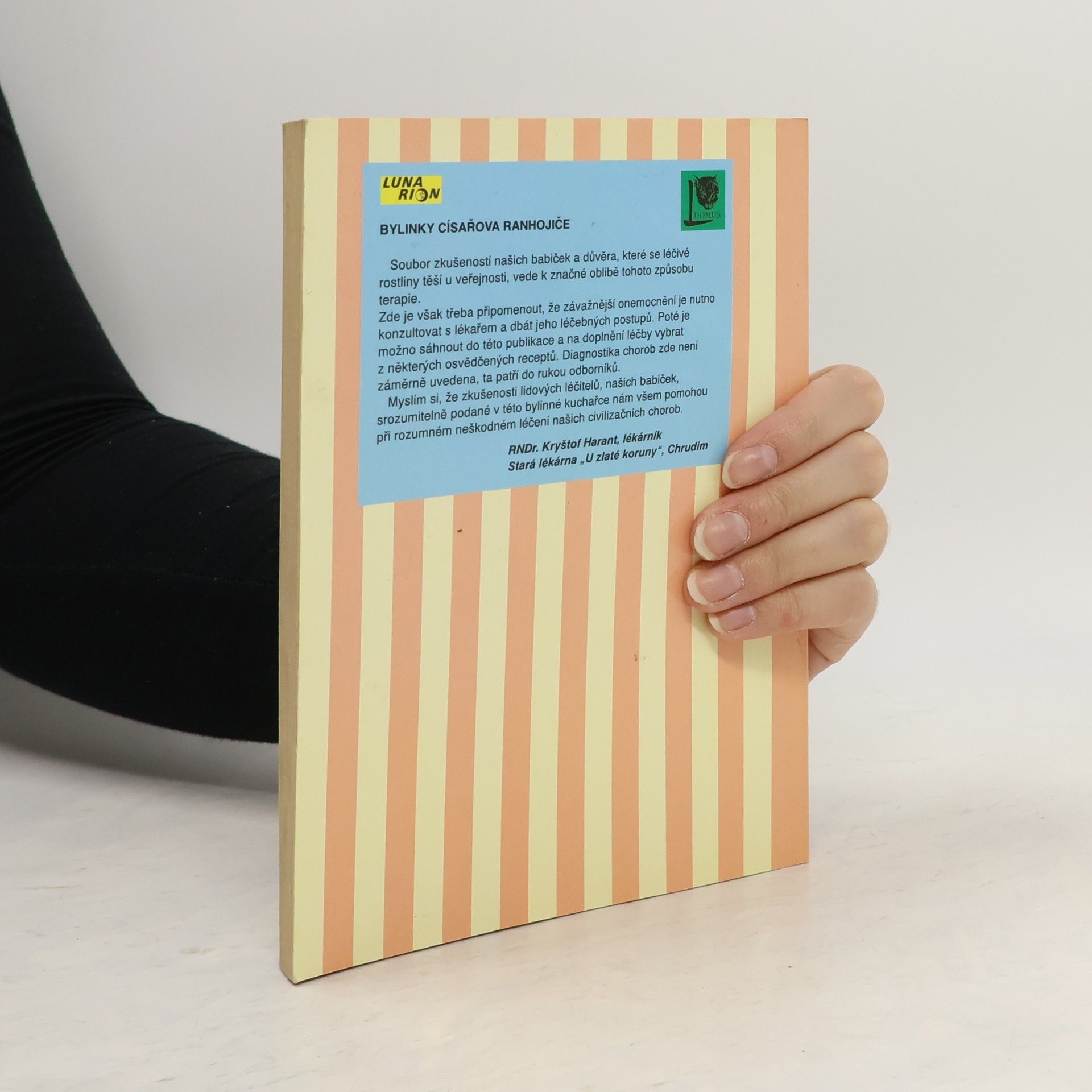 "Soubor zkušeností našich babiček a důvěra, které se léčivé rostliny těší u veřejnosti, vede ke značné oblibě tohoto způsobu terapie...zkušenosti lidových léčitelů, našich babiček, podané v této bylinné kuchařce nám všem pomohou při rozumném neškodném léčení našich civilizačních chorob." RNDr.Kryštof Harant, lékárník Stará lékárna "U zlaté koruny" Chrudim 1.vydání... celý text