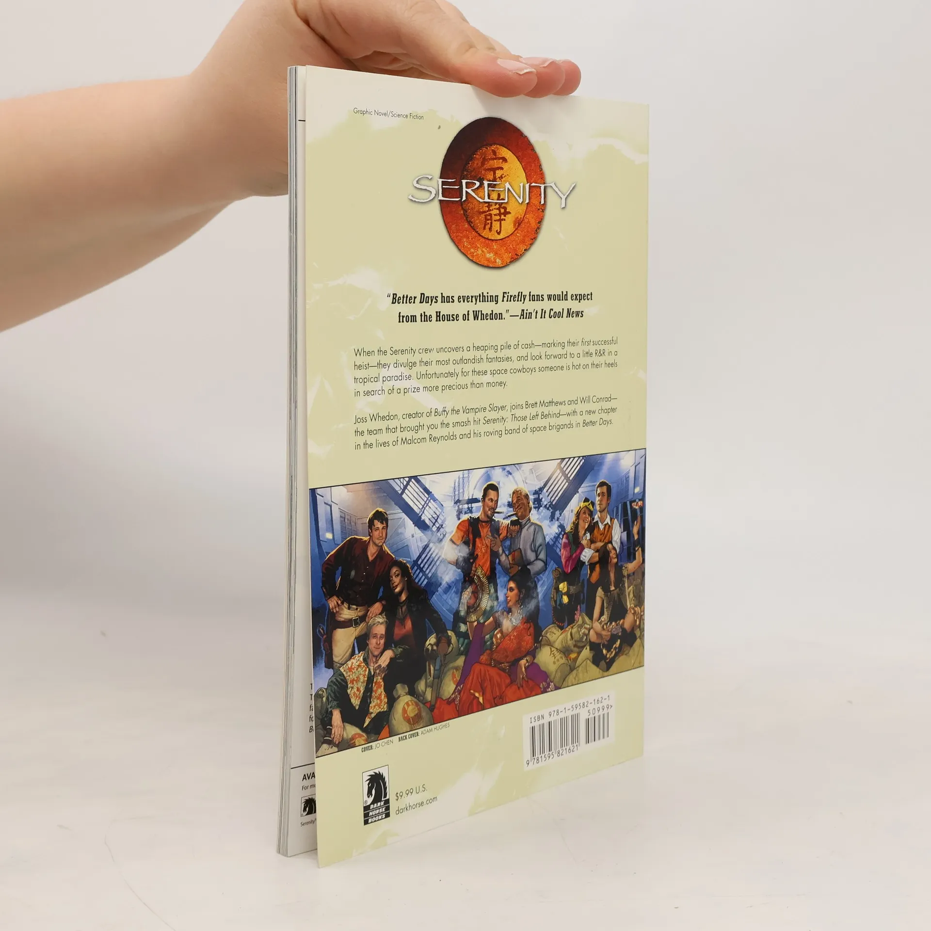 Serenity: Better Days follows everyone's favorite space cowboys in a thrilling, action-packed adventure, where Mal and his crew take on a heist that promises a big payoff. But when one of Serenity's crew is taken captive and tortured, the gang must put their enduring differences aside and work together to save one of their own, even if it means losing the cash prize of a lifetime! Joss Whedon returns to the world of his blockbuster film Serenity, reuniting with Brett Matthews and Will Conrad, his collaborators on the bestselling 2005 series Those Left Behind.