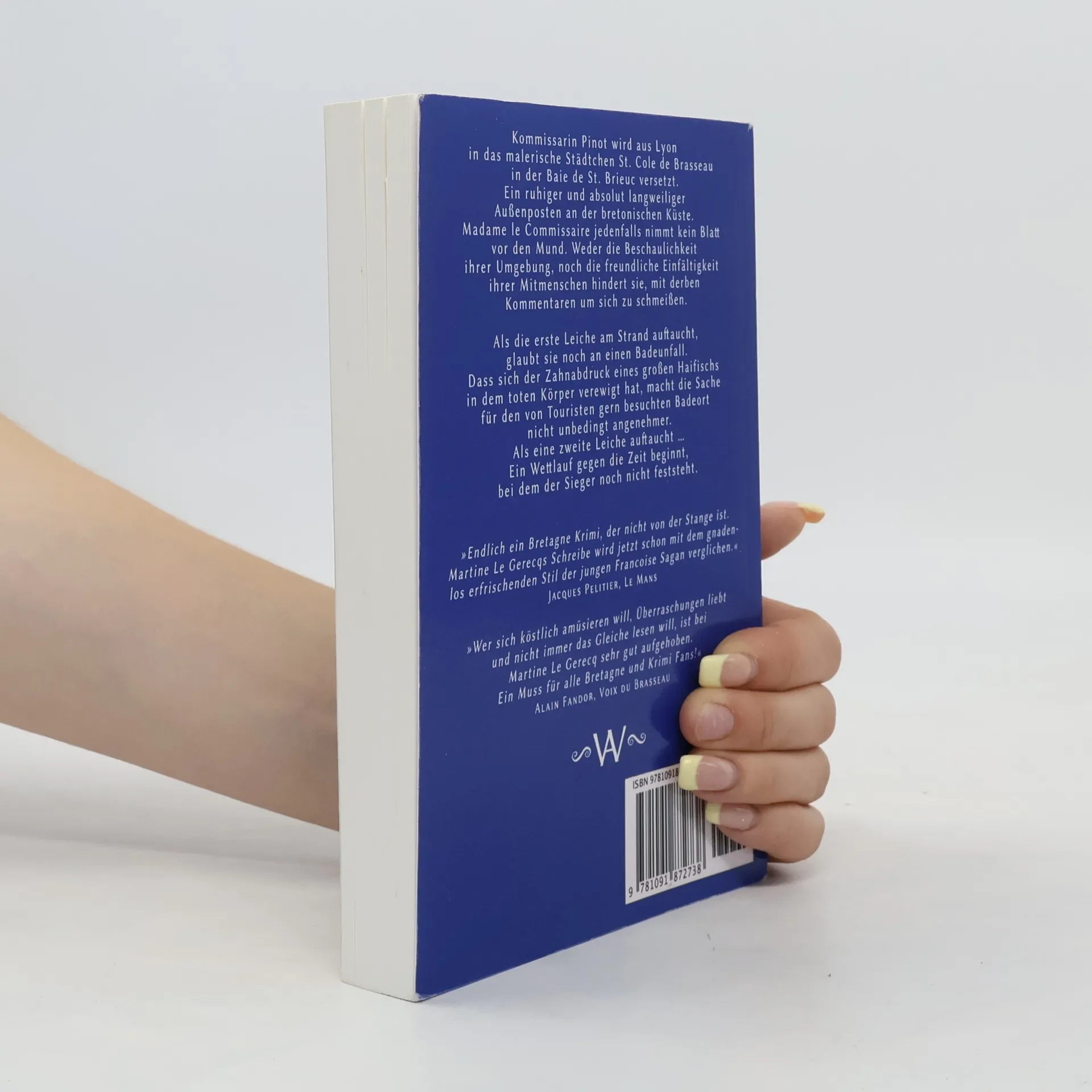 Kommissarin Pinot wird aus Lyon in das malerische Städtchen St. Cole de Brasseau in der Baie de St. Brieuc versetzt. Ein ruhiger und absolut langweiliger Außenposten an der bretonischen Küste. Madame le Commissaire jedenfalls nimmt kein Blatt vor den Mund. Weder die Beschaulichkeit ihrer Umgebung, noch die freundliche Einfältigkeit ihrer Mitmenschen hindert sie, mit derben Kommentaren um sich zu schmeißen. Als die erste Leiche am Strand auftaucht, glaubt sie noch an einen Badeunfall. Dass sich der Zahnabdruck eines großen Haifischs in dem toten Körper verewigt hat, macht die Sache für den von Touristen gern besuchten Badeort nicht unbedingt angenehmer. Als eine zweite Leiche auftaucht ... Ein Wettlauf gegen die Zeit beginnt, bei dem der Sieger noch nicht feststeht. »Endlich ein Bretagne Krimi, der nicht von der Stange ist. Martine Le Gerecqs Schreibe wird jetzt schon mit dem gnadenlos erfrischenden Stil der jungen Francoise Sagan verglichen.« Jacques Pelitier, Le Mans »Wer sich köstlich amüsieren will, Überraschungen liebt und nicht immer das Gleiche lesen will, ist bei Martine Le Gerecq sehr gut aufgehoben. Ein Muss für alle Bretagne und Krimi Fans!« Alain Fandor, Voix du Brasseau ERSTMALS IN DEUTSCH