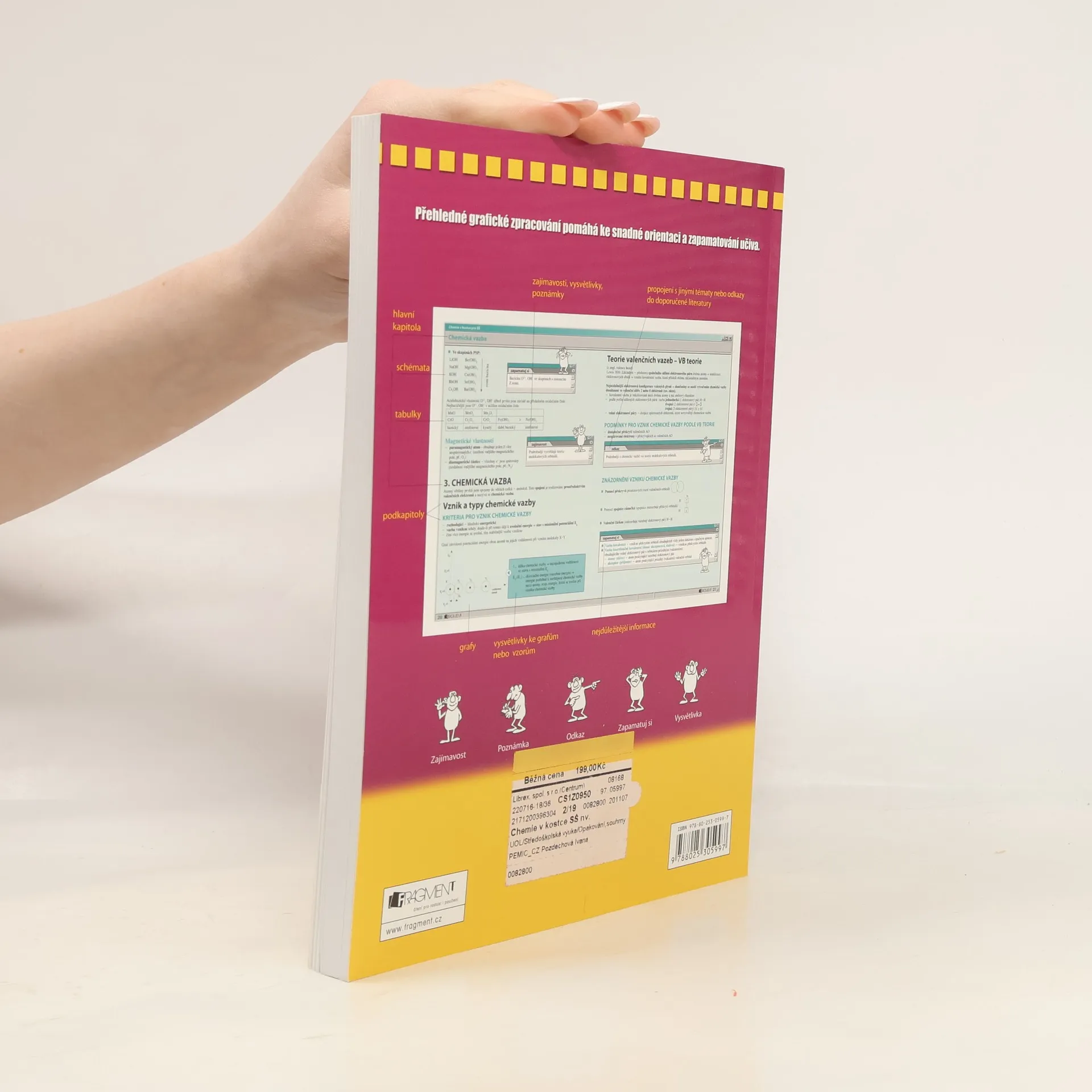 Přepracované a aktualizované vydání populární doplňkové učebnice pro střední školy v novém praktickém formátu. Učebnice shrnuje přehledně to podstatné z chemie, co student střední školy potřebuje nejen při přípravě k maturitě, ale během celého studia na střední škole. Na učebnici bude navazovat samostatná publikace Chemické názvosloví v kostce.