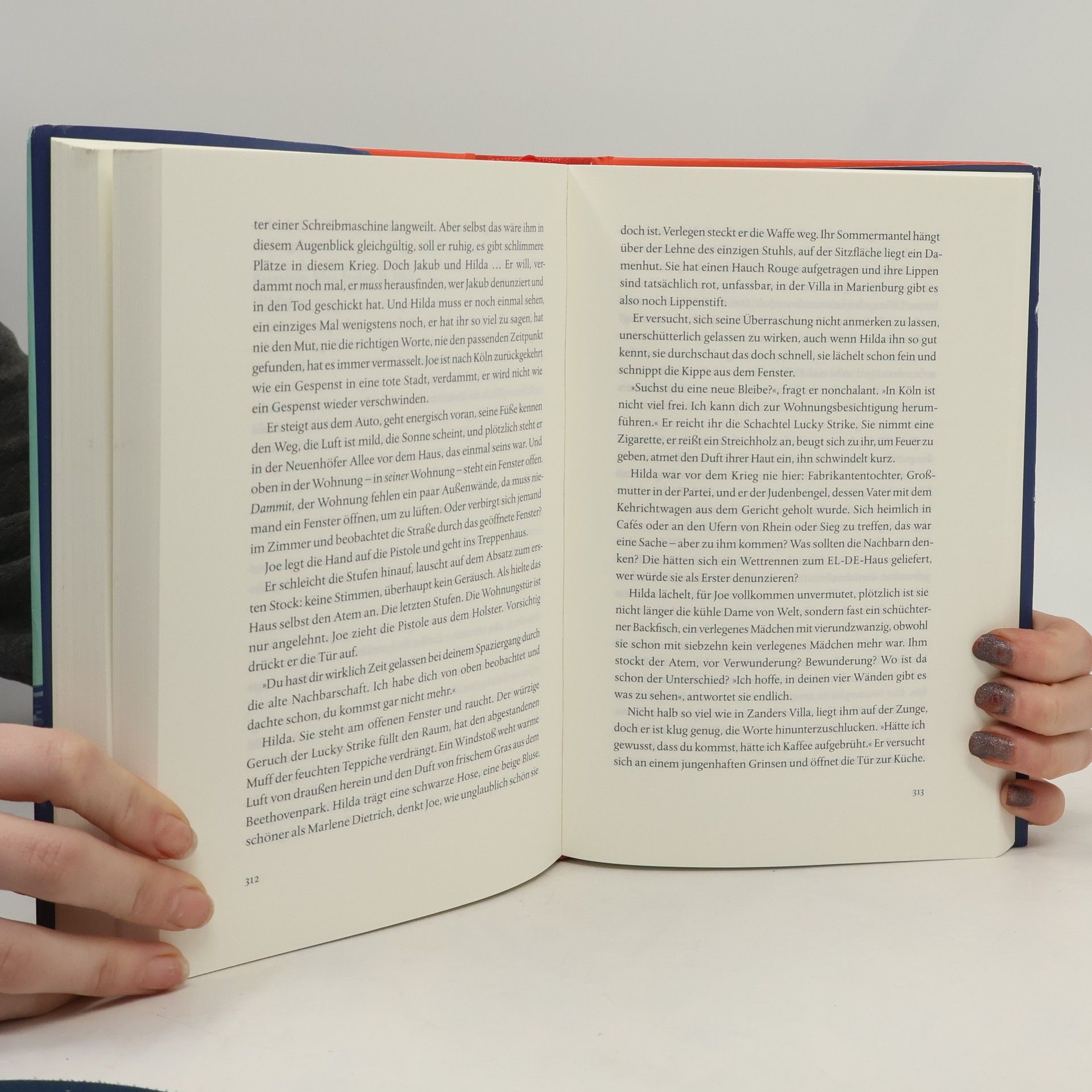 März 1945: Amerikanische Verbände haben Köln erreicht. Trotz der Durchhalteparolen aus Berlin ist der Widerstand gering, die Stadt wie ausgestorben. Kaum mehr 20.000 Menschen leben in den Trümmern. Doch die Amerikaner erobern nur einen Teil der zerstörten Metropole, denn der Rhein bildet wochenlang die Front. Unlängst wurde die Domstadt noch einmal schwer bombardiert. Ein abgeschossener Pilot stürzte dabei mit seinem Fallschirm mitten hinein ins Chaos – und wurde Opfer eines feigen Lynchmords. Nun soll der junge amerikanische Soldat Joe Salmon, eigentlich Joseph Salomon, ein Kölner Jude, der nach der »Reichskristallnacht« mit knapper Not in die USA emigrieren konnte, den Fall klären. Joe sucht den Mörder oder die Mörderin – tatsächlich aber sucht er insgeheim noch zwei andere Menschen, die er einst in der Heimat zurücklassen musste: Jakub und Hilda, seinen besten Freund und die Frau, in die er hoffnungslos verliebt war. Auf verschlungenen Pfaden nähert Joe sich der Lösung des Falls und der eigenen Vergangenheit und begegnet dabei historischen Persönlichkeiten, die im März 1945 in Köln gelebt und gewirkt haben: George Orwell, Konrad Adenauer, Hans Habe, Irmgard Keun.