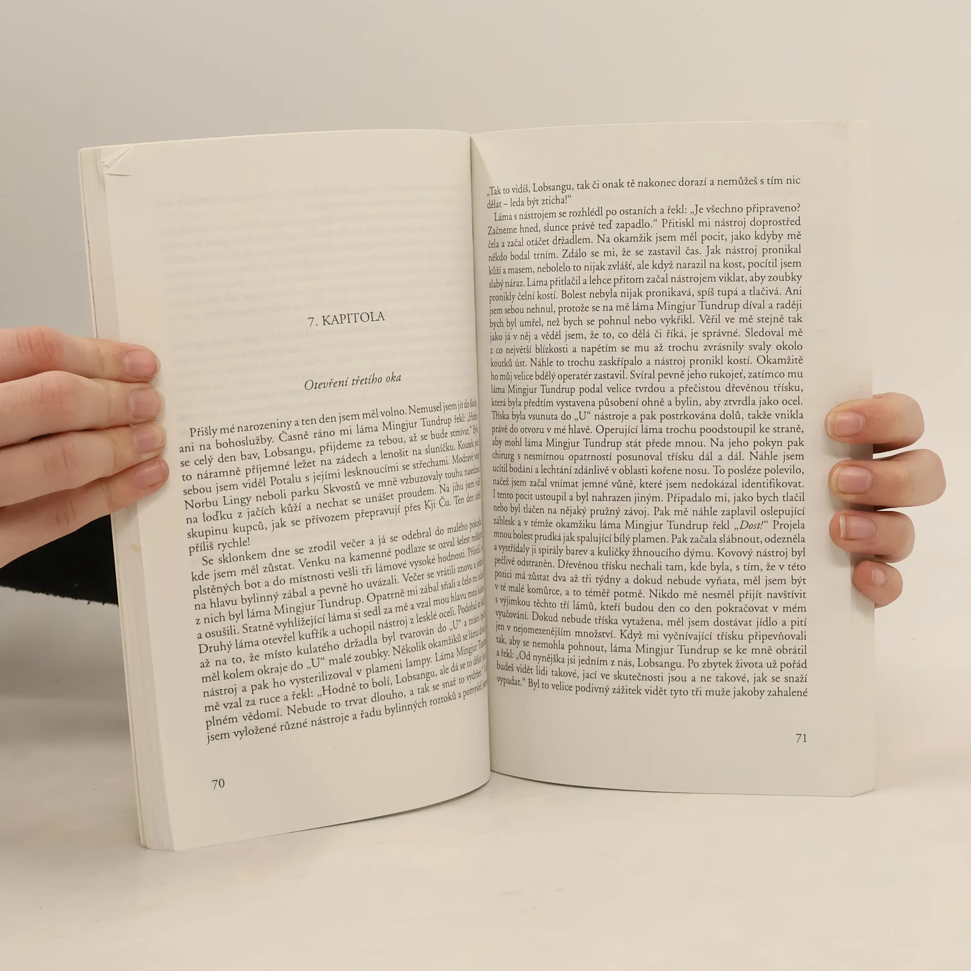 Autobiografické vyprávění tibetského lámy-lékaře o jeho dětství, kdy se jako osudem předurčený dostává do lámaserie, aby se zde vyškolil na lékaře. Velice poutavé až dobrodružné vyprávění se spoustou pozoruhodných reálií je především humanistickým poselstvím o skutečném smyslu lidské existence, jímž je soustavné směřování k dobru, dokonalosti a vyrovnanosti. Zde přidaný přebal knihy neodpovídá tomuto českému vydání.