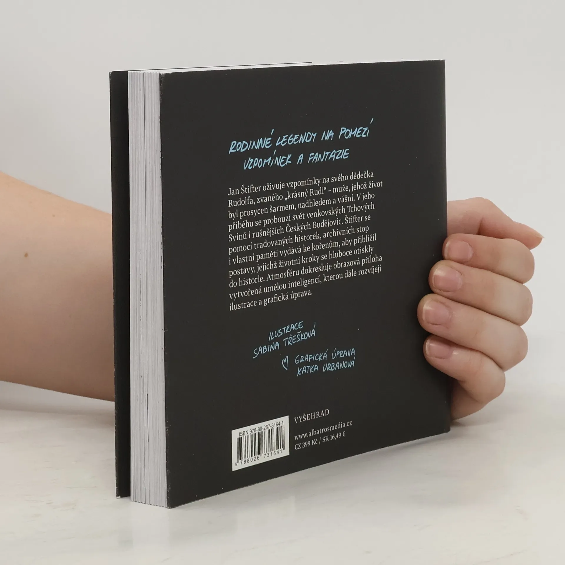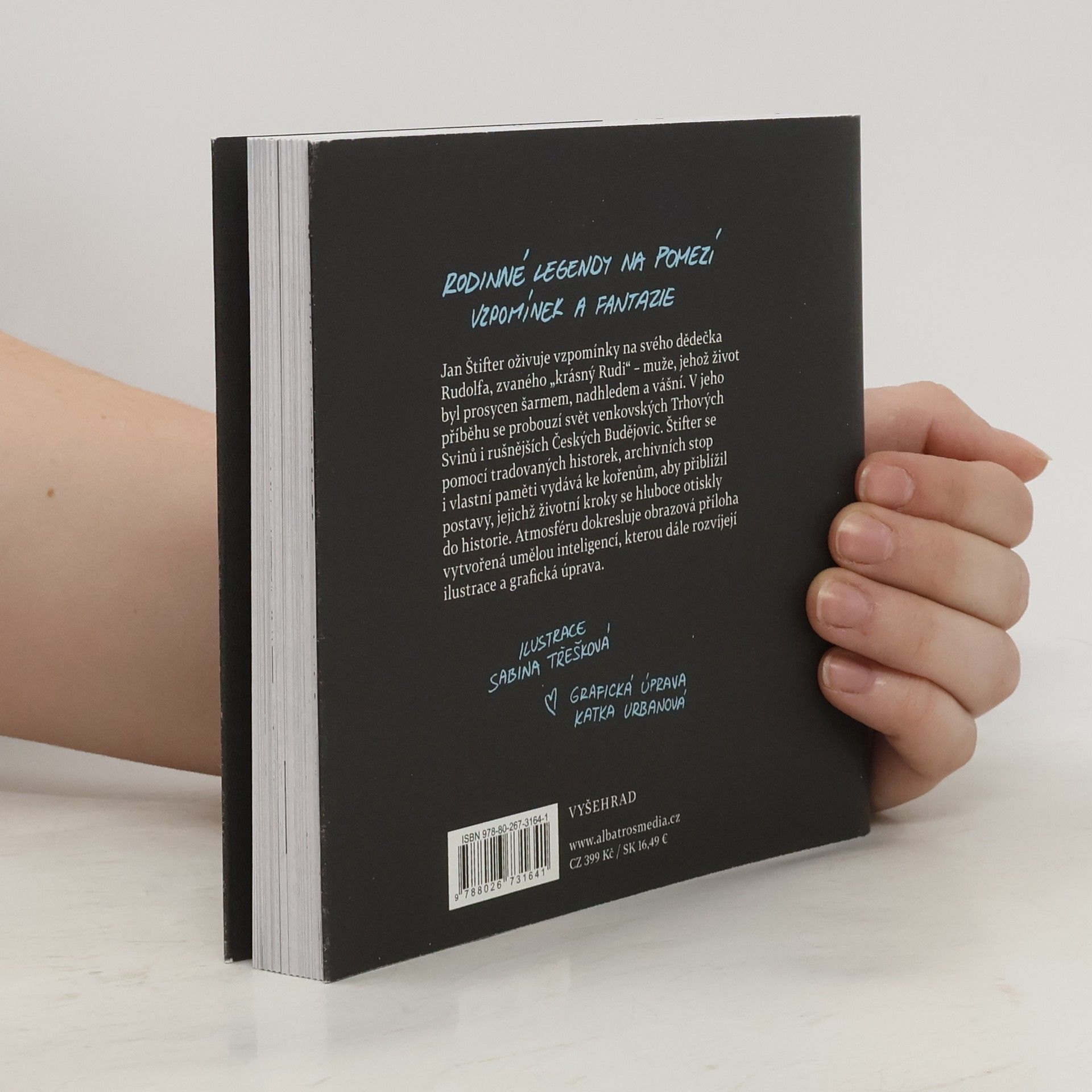 Říkával o sobě, že vypadá jako Sean Connery, a chtěl, aby ho oslovovali „krásný Rudi“… Jan Štifter v nové knize shromáždil vzpomínky na svého dědečka Rudolfa – muže, jehož život byl prosycen šarmem, nadhledem a vášní. V jeho příběhu ožívá nezapomenutelný svět venkovských Trhových Svinů i rušnějších Českých Budějovic. Štifter se pomocí tradovaných příběhů, archivních stop i vlastní paměti vydává ke kořenům, aby prostřednictvím Rudiho a dalších předků přiblížil postavy, jejichž životní kroky se hluboce otiskly do paměti rodiny a místní historie. Atmosféru knihy dokresluje originální autorská obrazová příloha vytvořená umělou inteligencí, která ve spojení s ilustracemi Sabiny Třeškové a unikátní grafickou úpravou Kateřiny Urbanové každou vzpomínku prohlubuje a propojuje minulost s vizuální fantazií.