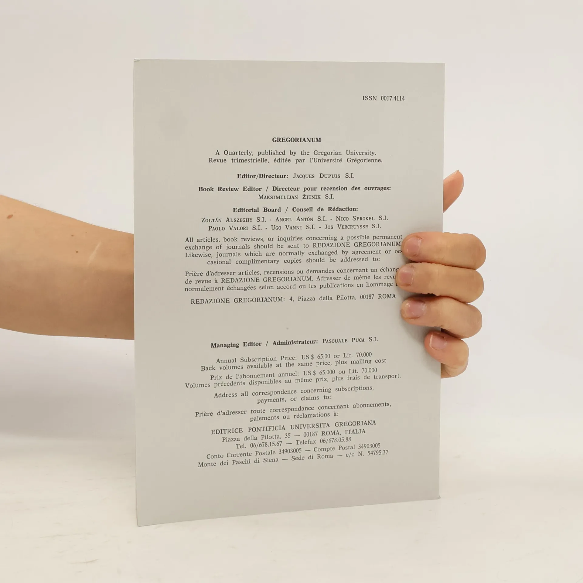 Gregorianum 72/1, Kolektiv autorů