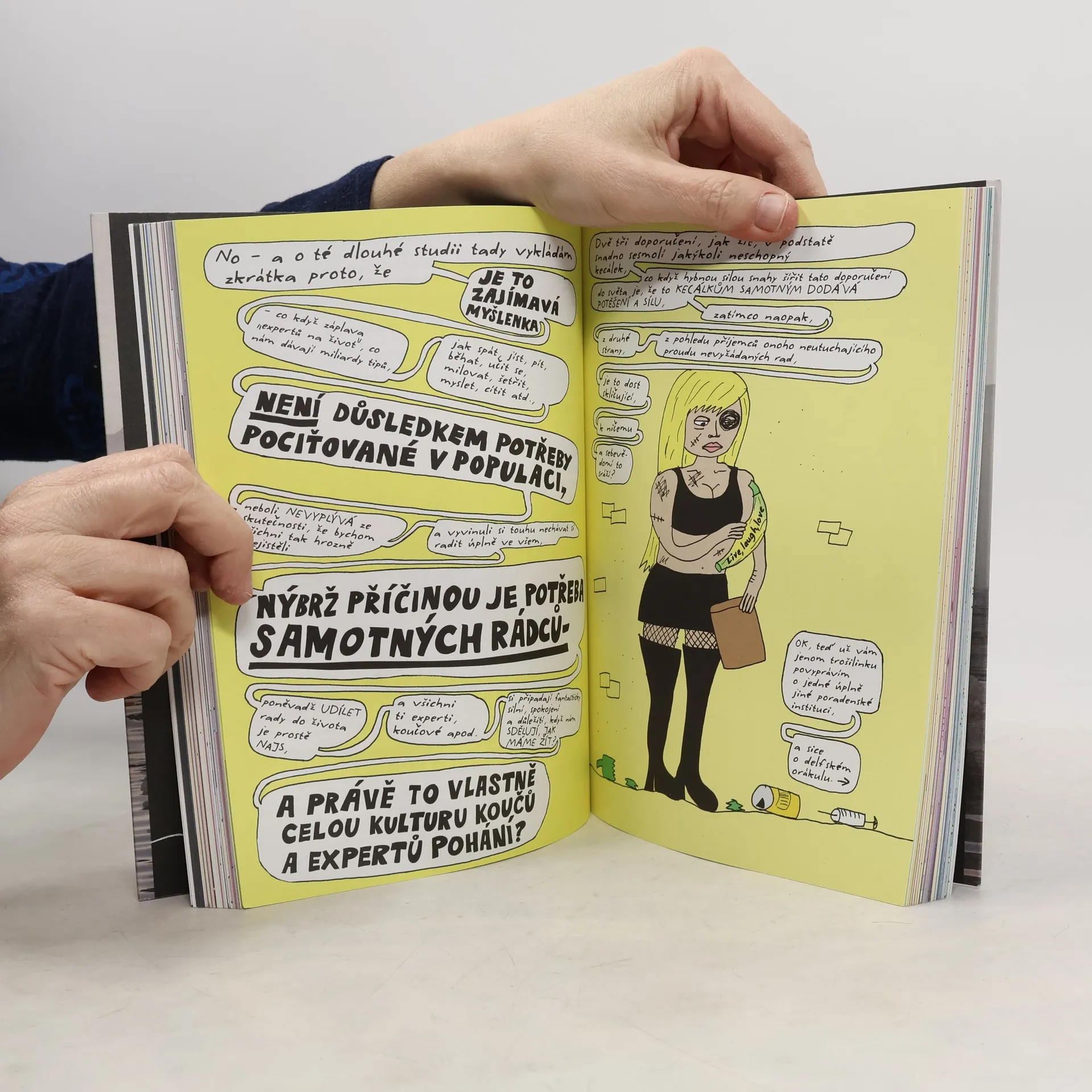 Kdo by netoužil zdokonalit svůj život? Svět je plný koučů a všemožných rádců, kteří nám slibují, že vědí, jak na to. Už v antice chodili lidé do věštíren, nicméně svého osobního astrologa měl třeba i Ronald Reagan. V současnosti potřeba vyhledávat nejrůznější „odborníky“ přerůstá v masovou mánii, na jejíž digitální vlně se vezou instagramoví psychoterapeuti s miliony sledujících, samozvaní experti na lásku i guruové dokonalého sexu či úklidu. Jak z toho ven? A jak se vyrovnat s tím, že nakonec všichni zemřeme? Švédská komiksová superstar přichází se self-help příručkou pro všechny, kdo self-help příručky nenávidí. S vtipem i s filozofickým přesahem nahlíží naši posedlost kulturou wellness, víru v internetová orákula i řadu dalších neuróz dnešní doby.