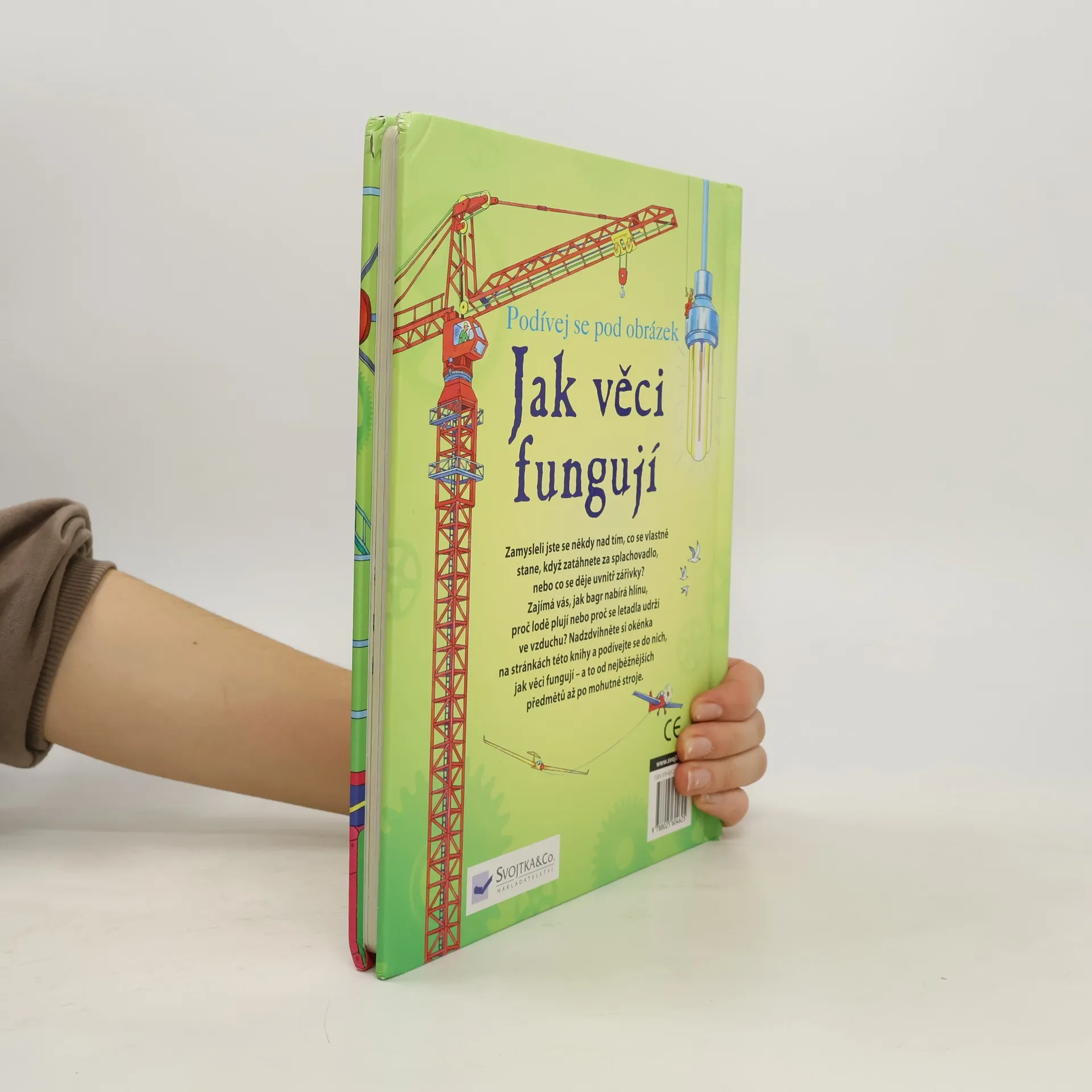 Zamysleli jste se někdy nad tím, jak protéká voda splachovacím zařízením, případně co se děje uvnitř zářivky – proč vlastně svítí? Zajímá vás, jak bagr nabírá hlínu, proč lodě plují nebo proč se letadla udrží ve vzduchu? Nadzdvihněte okénka na stránkách této knihy a podívejte se do nich, jak věci fungují – a to od nejběžnějších předmětů až po mohutné stroje. V knížce jich naleznete více než 90.