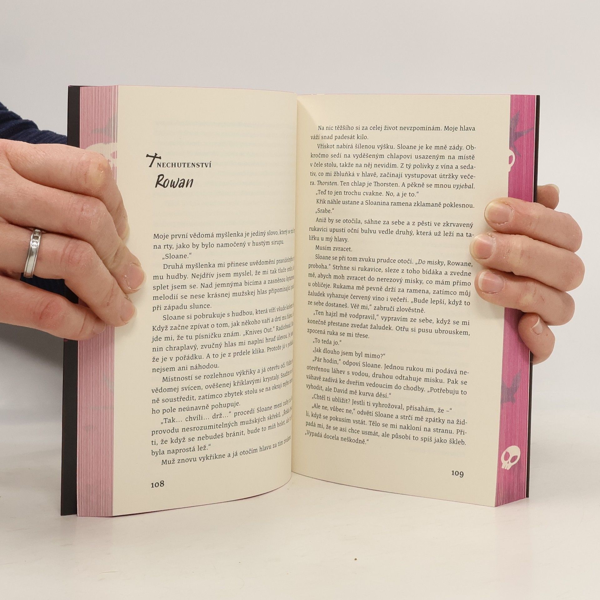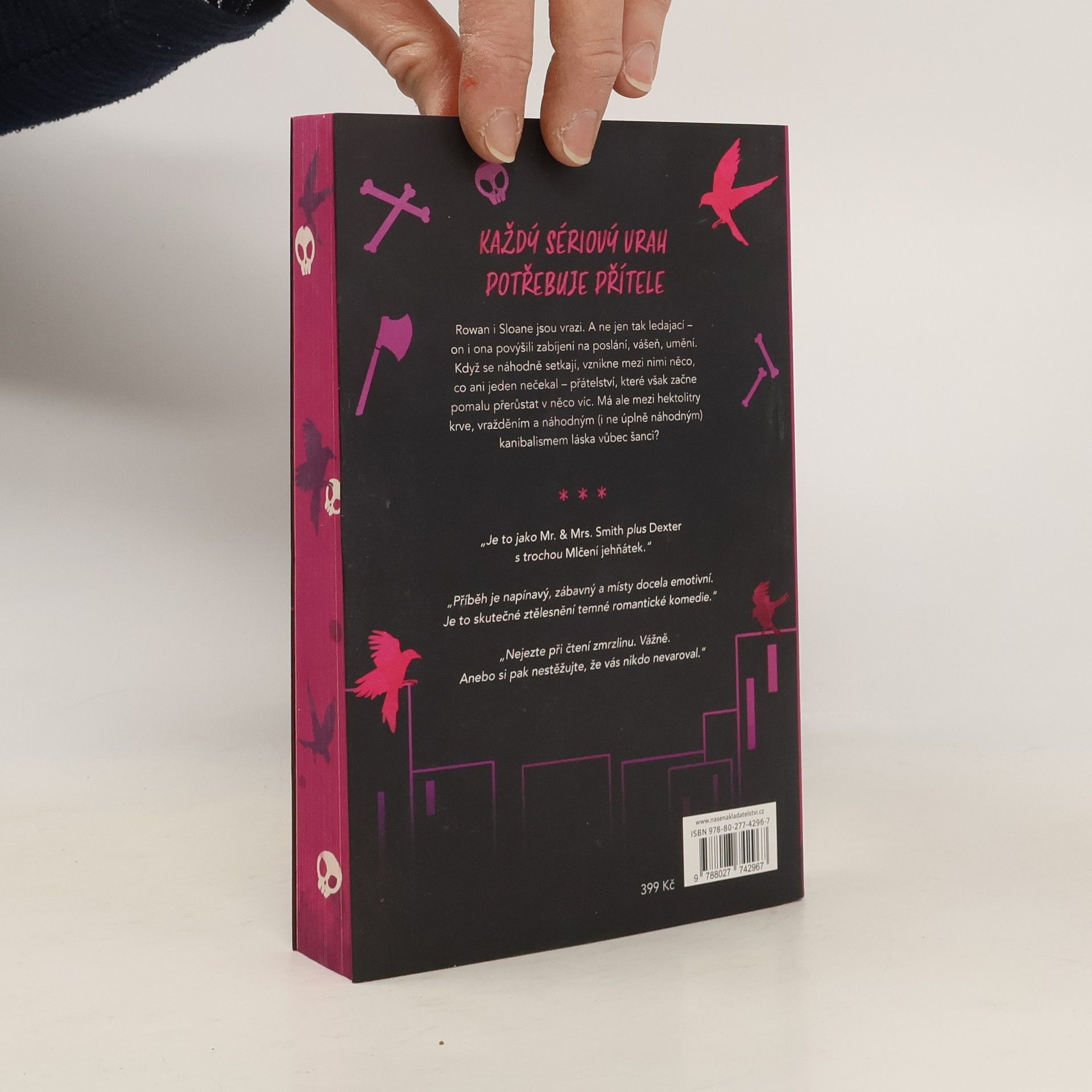 Pokud něco na knihách nesnáším, tak je to nákupní seznam s položkami, které mohou čtenáře znepokojit. Jako vážně? Více spoilerů jste mi už naservírovat nemohli... Nejprve začnu s pochvalou: 1) i přesto, že nejsem milovník růžové, tak musím ocenit, že kniha na první pohled zaujme. 2) vazba se okamžitě nerozpadne a čtenář si neničí oči, protože font a velikost písma je výborná. 3) střídání vypravěče udržuje čtenáře v tempu (tomu dopomáhá i to, že jsou kapitoly poměrně krátké). Proč jsem dala jen tři hvězdy? Kniha se tváří jako drsné DR, ze kterého se člověk posadí na zadek. Ve výsledku jde o velmi předvídatelný děj, kdy čtenář hraje s knihou Bingo a pokaždé vyhraje. O postavy nemáte strach, protože víte, že nezemřou. Ony nechutné scény vás nijak nezasáhnou, protože důraz je kladen na “romantické” představy Kavky a Řezníka (kdyby tolika úsilí autorka věnovala budování atmosféry, tak bych ze čtení i něco měla - třeba noční můry). Svým způsobem jsou jednotlivé vraždy jako přes kopírák, takže se po chvíli nudíte a říkáte si: “ale ne, už zase?”. Možná kdyby Řezník nemluvil a nepřemýšlel jako “zamrzlý puberťák”, tak bych si jej i oblíbila. A o tom, jak nepolapitelní tito vrahouni jsou - to už nemám sílu řešit...