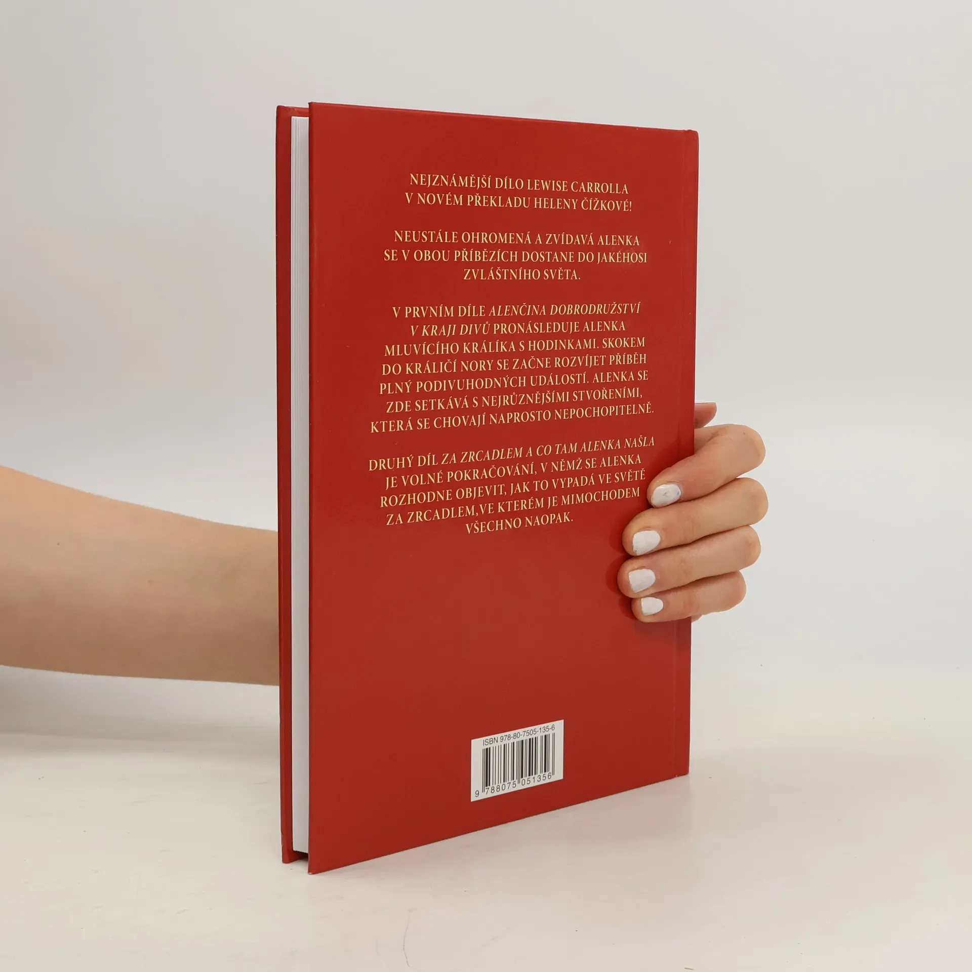 Nejznámější dílo Lewise Carrolla v novém překladu Heleny Čížkové. Neustále ohromená a zvídavá Alenka se v obou příbězích obsažených v knize dostane do zvláštního cizího světa. V prvním díle Alenčina dobrodružství v kraji divů pronásleduje Alenka mluvícího králíka s hodinkami. Skokem do králičí nory se začne rozvíjet příběh plný podivuhodných událostí. Alenka se zde setkává s nejrůznějšími stvořeními, která se chovají zcela nepochopitelně. Druhý díl Za zrcadlem a co tam Alenka našla je volné pokračování, v němž se Alenka rozhodne objevit, jak to vypadá ve světě za zrcadlem, ve kterém je mimochodem všechno naopak.