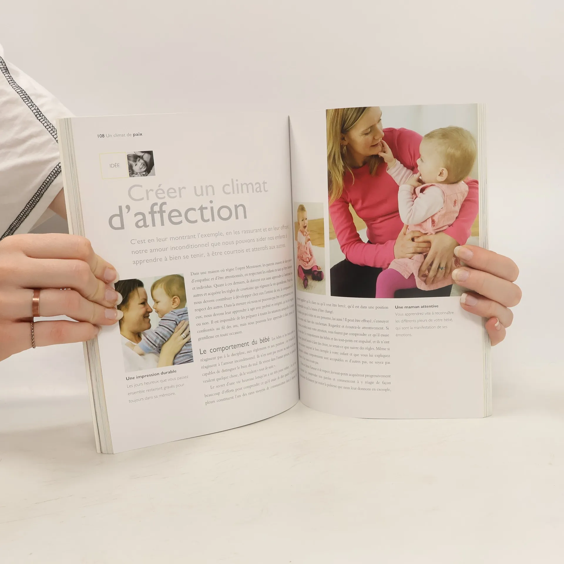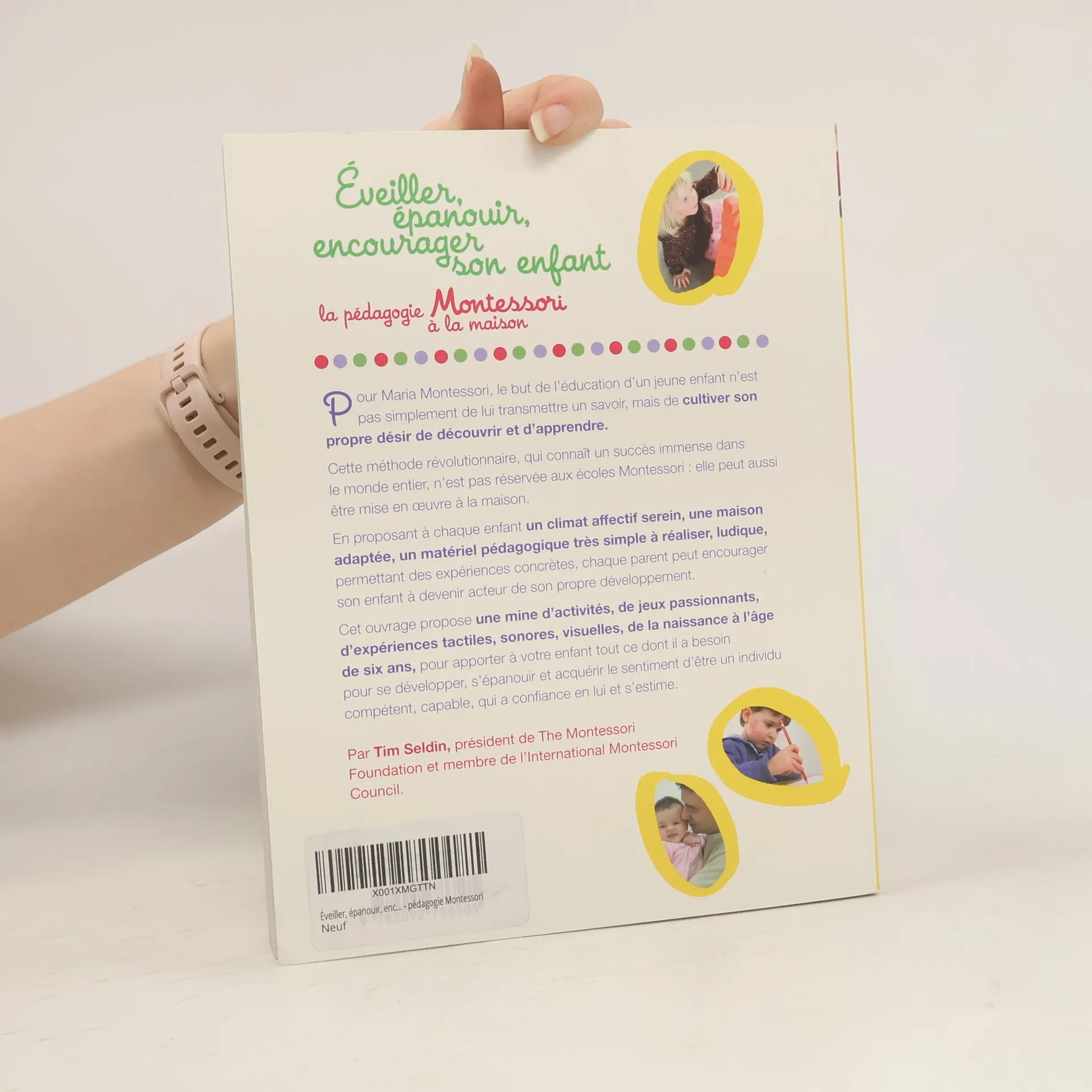 Pour Maria Montessori, le but de l'éducation d'un jeune enfant n'est pas simplement de lui transmettre un savoir, mais de cultiver son propre désir de découvrir et d'apprendre. Cette méthode révolutionnaire, qui connaît un succès immense dans le monde entier, n'est pas réservée aux écoles Montessori : elle peut aussi être mise en oeuvre à la maison. En proposant à chaque enfant un climat affectif serein, une maison adaptée, un matériel pédagogique très simple à réaliser, ludique, permettant des expériences concrètes, chaque parent peut encourager son enfant à devenir acteur de son propre développement. Cet ouvrage propose une mine d'activités, de jeux passionnants, d'expériences tactiles, sonores, visuelles, de la naissance à l'âge de six ans, pour apporter à votre enfant tout ce dont il a besoin pour se développer, s'épanouir et acquérir le sentiment d'être un individu compétent, capable, qui a confiance en lui et s'estime.