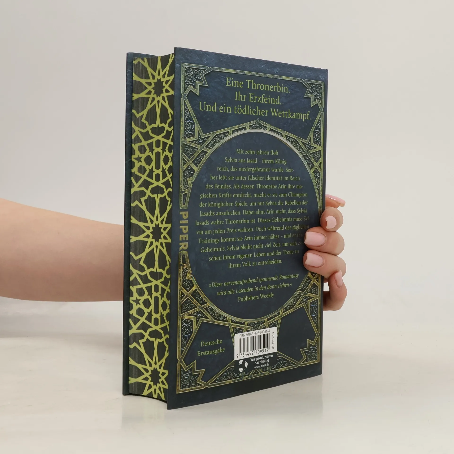 Eine Thronerbin. Ihr Erzfeind. Und tödliche Spiele. Mit zehn Jahren floh Sylvia aus dem niedergebrannten Jasad und lebt seitdem unter falscher Identität im Reich des Feindes. Als dessen Thronerbe Arin ihre magischen Kräfte entdeckt, macht er sie zum Champion der königlichen Spiele, um mit Sylvia die Rebellen der Jasad anzulocken. Arin ahnt nicht, dass Sylvia Jasads wahre Thronerbin ist. Ihr Geheimnis muss Sylvia um jeden Preis wahren und sich zwischen ihrem Leben und der Treue zu ihrem Volk entscheiden. Währenddessen kommt sie beim täglichen Training Arin immer näher, was ihren sicheren Tod bedeuten könnte.