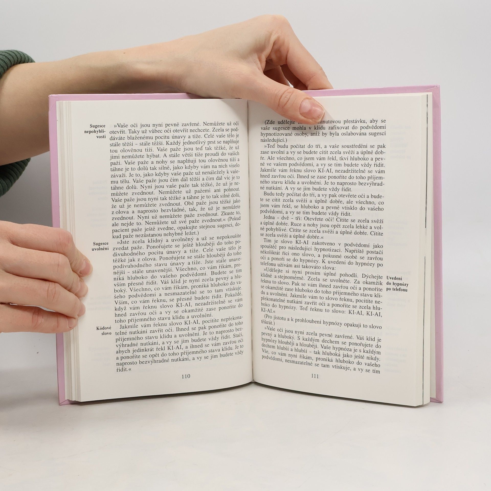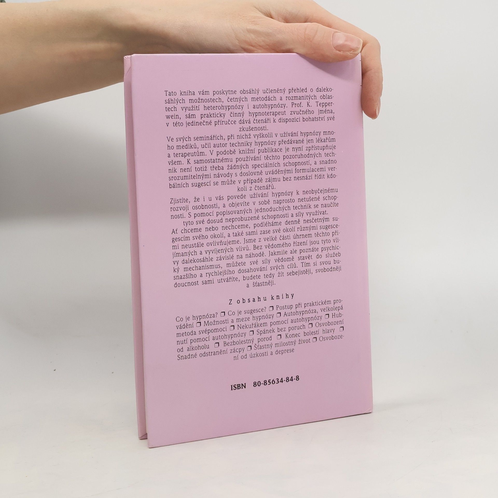 Tato kniha vám poskytne obsáhlý učleněný přehled o dalekosáhlých možnostech, četných metodách a rozmanitých oblastech využití heterohypnózy i autohypnózy. Autor, sám prakticky činný hypnoterapeut zvučného jména, v této jedinečné příručce dává čtenáři k dispozici bohatství své zkušenosti. Ve svých seminářích, při nichž vyškolil v užívání hypnózy mnoho mediků, učil techniky hypnózy předávané jen lékařům a terapeutům. V podobě knižní publikace je nyní zpřístupňuje všem. K samostatnému používání těchto pozoruhodných technik není totiž třeba žádných speciálních schopností a snadno srozumitelnými návody s doslovně uváděnými formulacemi verbálních sugescí se může v případě zájmu bez nesnází řídit kdokoli z čtenářů. Zjistíte, že i u vás povede užívání hypnózy k neobyčejnému rozvoji osobnosti, a objevíte v sobě naprosto netušené schopnosti. S pomocí popisovaných jednoduchých technik se naučíte tyto své dosud neprobuzené schopnosti a síly využívat.