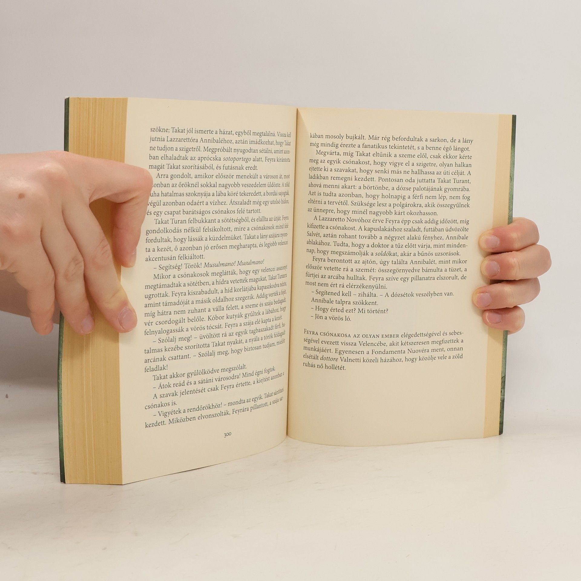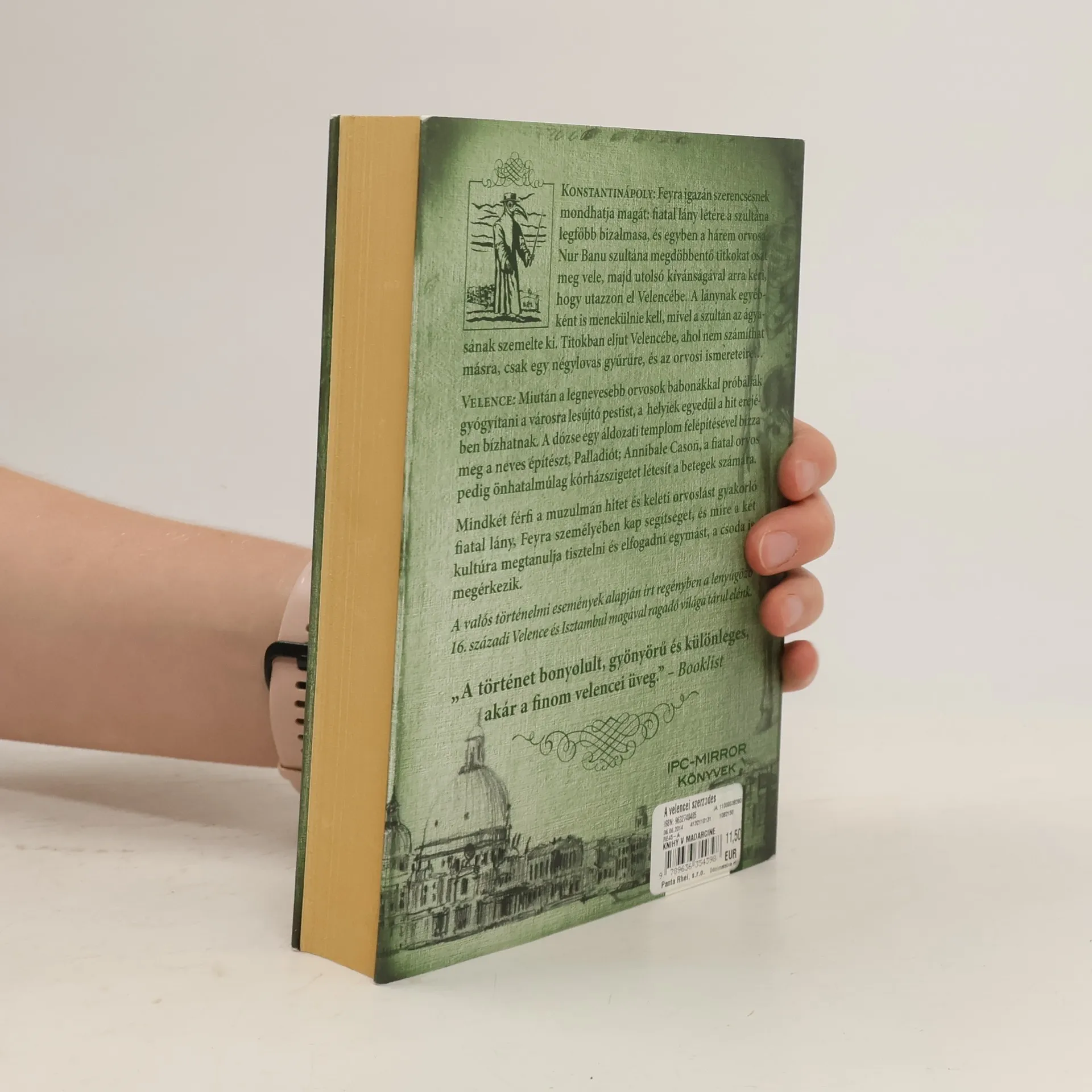 VAJON MILYEN SÚLYOS TITKOK REJLENEK VELENCE SZÍVÉBEN? Konstantinápoly Feyra igazán szerencsésnek mondhatja magát: fiatal lány létére ő a szultána legfőbb bizalmasa, és egyben a hárem orvosa. Nur Banu szultána megdöbbentő titkokat oszt meg vele, majd utolsó kívánságával arra kéri, hogy utazzon el Velencébe. A lánynak egyébként is menekülnie kell, mivel a szultán az ágyasának szemelte ki. Titokban eljut Velencébe, ahol nem számíthat másra, csak egy négylovas gyűrűre, és az orvosi ismereteire… Velence Miután a legnevesebb orvosok babonákkal próbálják gyógyítani a városra lesújtó pestist, a helyiek egyedül a hit erejében bízhatnak. A dózse egy áldozati templom felépítésével bízza meg a neves építészt, Palladiót; Annibale Cason, a fiatal orvos pedig önhatalmúlag kórházszigetet létesít a betegek számára. MINDKÉT FÉRFI A MUZULMÁN HITET ÉS KELETI ORVOSLÁST GYAKORLÓ FIATAL LÁNY, FEYRA SZEMÉLYÉBEN KAP SEGÍTSÉGET, ÉS MIRE A KÉT KULTÚRA MEGTANULJA TISZTELNI ÉS ELFOGADNI EGYMÁST, A CSODA IS MEGÉRKEZIK. A VALÓS TÖRTÉNELMI ESEMÉNYEK ALAPJÁN ÍRT REGÉNYBEN A LENYŰGÖZŐ 16. SZÁZADI VELENCE ÉS ISZTAMBUL MAGÁVAL RAGADÓ VILÁGA TÁRUL ELÉNK.