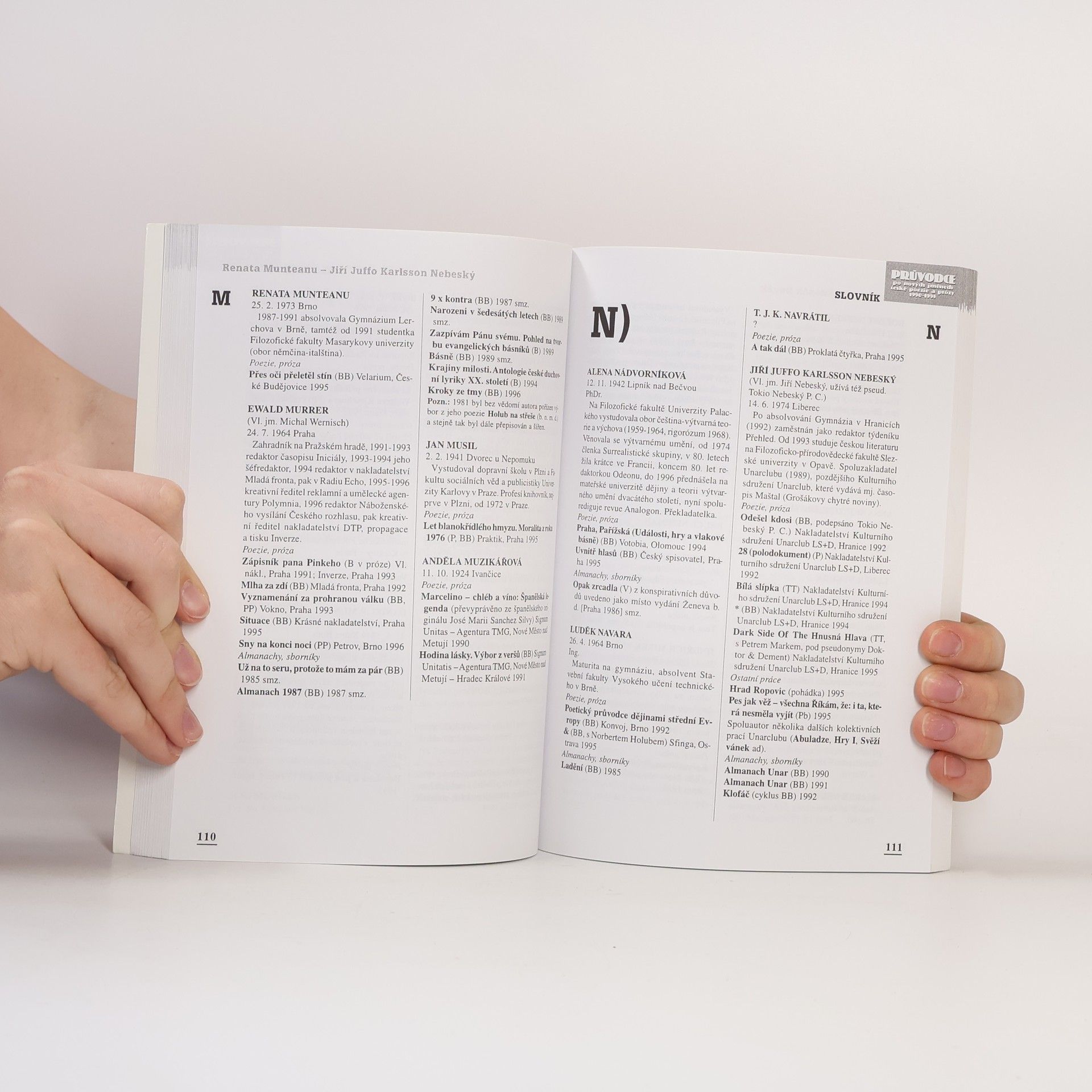 Skladem máme celkem knihy Průvodce po nových jménech české poezie a prózy 1990-1995 (1996).