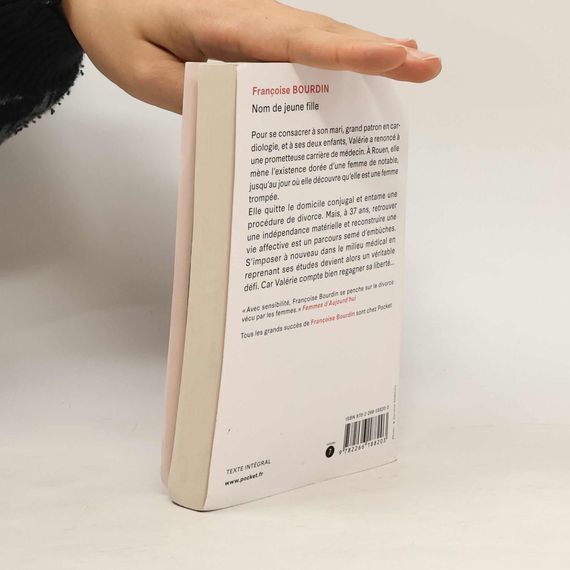 Pour se consacrer à son mari, grand patron en cardiologie, et à ses deux enfants, Valérie a renoncé à une prometteuse carrière de médecin. A Rouen, elle mène l'existence dorée d'une épouse de notable, jusqu'au jour où elle découvre qu'elle est une femme trompée. Elle quitte le domicile conjugal et entame une procédure de divorce. Mais, à trente-sept ans, retrouver une indépendance matérielle et reconstruire une vie affective est un parcours semé d'embûches. S'imposer à nouveau dans le milieu médical en reprenant ses études devient alors un véritable défi. Car Valérie compte bien regagner enfin sa liberté... " Avec sensibilité, Françoise Bourdin se penche sur le divorce vécu par les femmes. "