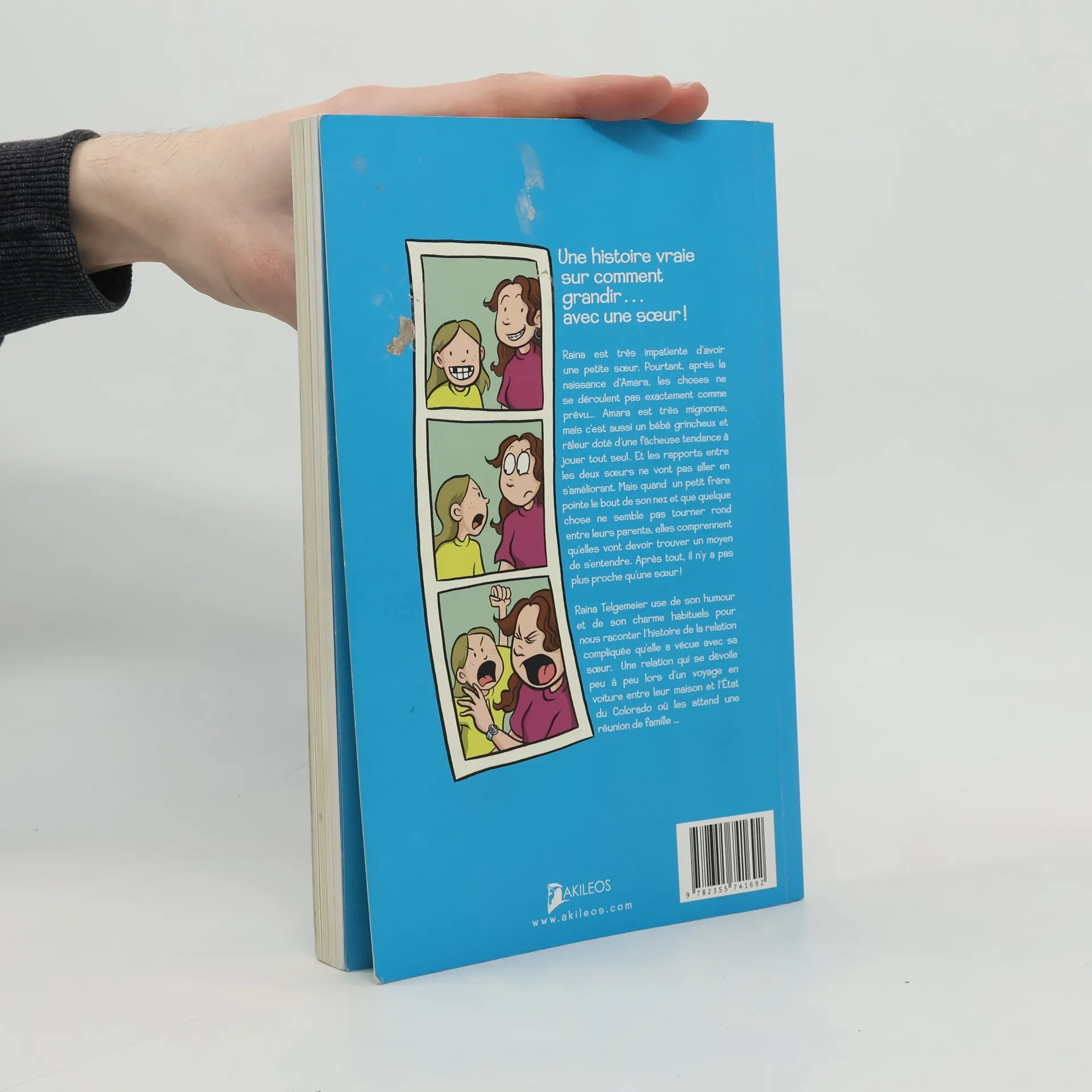 Raina est très impatiente d'avoir une petite soeur. Pourtant, après la naissance d'Amara, les choses ne se déroulent pas exactement comme prévu... Amers est très mignonne, mais c'est aussi un bébé grincheux et râleur doté d'une fâcheuse tendance à jouer tout seul. Et les rapports entre les deux soeurs ne vont pas aller en s'améliorant. Mais quand un petit frère pointe le bout de son nez et que quelque chose ne semble pas tourner rond entre leurs parents, elles comprennent qu'elles vont devoir trouver un moyen de s'entendre. Après tout, il n'y a pas plus proche qu'une soeur ! Raina Telgemeier use de son humour et de son charme habituels pour nous raconter l'histoire de la relation compliquée qu'elle a vécue avec sa soeur. Une relation qui se dévoile peu à peu lors d'un voyage en voiture entre leur maison et l'Etat du Colorado où les attend une réunion de famille ...
