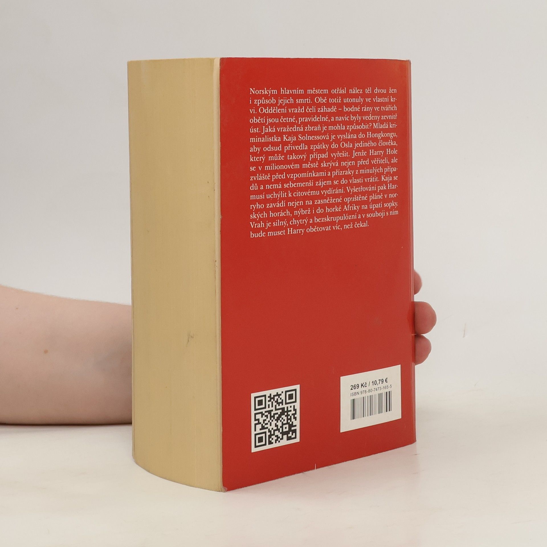 Norským hlavním městem otřásl nález dvou ženských těl i způsob jejich smrti. Obě totiž utonuly ve vlastní krvi. Oddělení vražd čelí záhadě - bodné rány ve tvářích obětí jsou četné, pravidelné, a navíc byly vedeny zevnitř úst. Jaká vražedná zbraň je mohla způsobit? Mladá kriminalistka Kaja Solnessová je vyslána do Hongkongu, aby odsud přivedla zpátky do Osla jediného člověka, který může takový případ vyřešit. Jenže Harry Hole se v milionovém městě skrývá nejen před věřiteli, ale zvláště před vzpomínkami a přízraky z minulých případů a nemá sebemenší zájem se do vlasti vrátit. Kaja se musí uchýlit k citovému vydírání. Vyšetřování pak Harryho zavádí nejen na zasněžené opuštěné pláně v norských horách, nýbrž i do horké Afriky na úpatí sopky. A jde v něm o život. Vrah je silný, chytrý a bezskrupulózní a v souboji s ním bude muset Harry obětovat víc, než čekal.