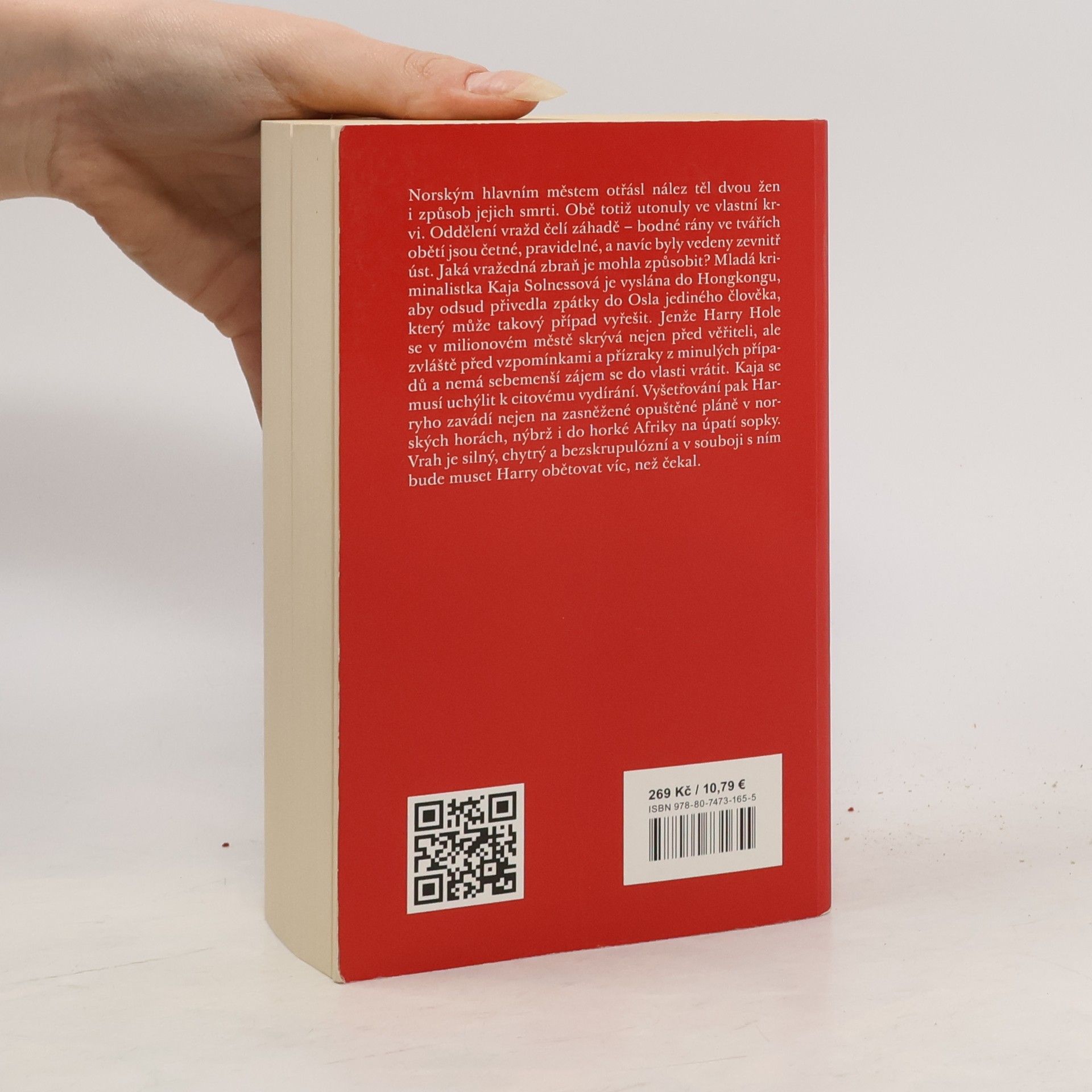 Norským hlavním městem otřásl nález dvou ženských těl i způsob jejich smrti. Obě totiž utonuly ve vlastní krvi. Oddělení vražd čelí záhadě - bodné rány ve tvářích obětí jsou četné, pravidelné, a navíc byly vedeny zevnitř úst. Jaká vražedná zbraň je mohla způsobit? Mladá kriminalistka Kaja Solnessová je vyslána do Hongkongu, aby odsud přivedla zpátky do Osla jediného člověka, který může takový případ vyřešit. Jenže Harry Hole se v milionovém městě skrývá nejen před věřiteli, ale zvláště před vzpomínkami a přízraky z minulých případů a nemá sebemenší zájem se do vlasti vrátit. Kaja se musí uchýlit k citovému vydírání. Vyšetřování pak Harryho zavádí nejen na zasněžené opuštěné pláně v norských horách, nýbrž i do horké Afriky na úpatí sopky. A jde v něm o život. Vrah je silný, chytrý a bezskrupulózní a v souboji s ním bude muset Harry obětovat víc, než čekal.