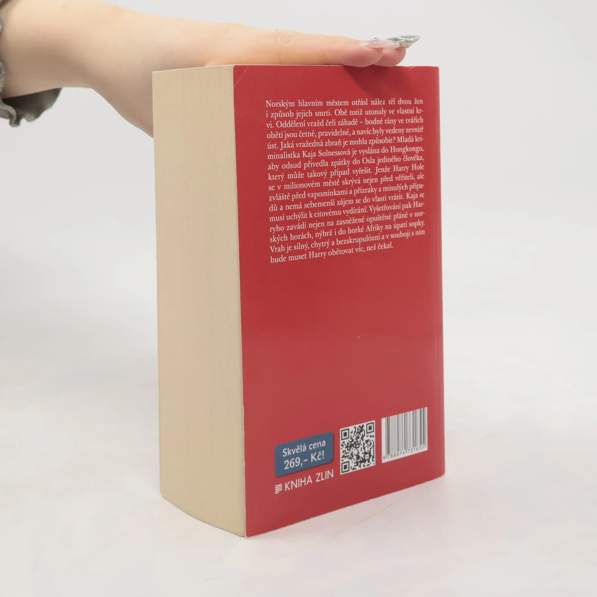 Norským hlavním městem otřásl nález dvou ženských těl i způsob jejich smrti. Obě totiž utonuly ve vlastní krvi. Oddělení vražd čelí záhadě - bodné rány ve tvářích obětí jsou četné, pravidelné, a navíc byly vedeny zevnitř úst. Jaká vražedná zbraň je mohla způsobit? Mladá kriminalistka Kaja Solnessová je vyslána do Hongkongu, aby odsud přivedla zpátky do Osla jediného člověka, který může takový případ vyřešit. Jenže Harry Hole se v milionovém městě skrývá nejen před věřiteli, ale zvláště před vzpomínkami a přízraky z minulých případů a nemá sebemenší zájem se do vlasti vrátit. Kaja se musí uchýlit k citovému vydírání. Vyšetřování pak Harryho zavádí nejen na zasněžené opuštěné pláně v norských horách, nýbrž i do horké Afriky na úpatí sopky. A jde v něm o život. Vrah je silný, chytrý a bezskrupulózní a v souboji s ním bude muset Harry obětovat víc, než čekal.