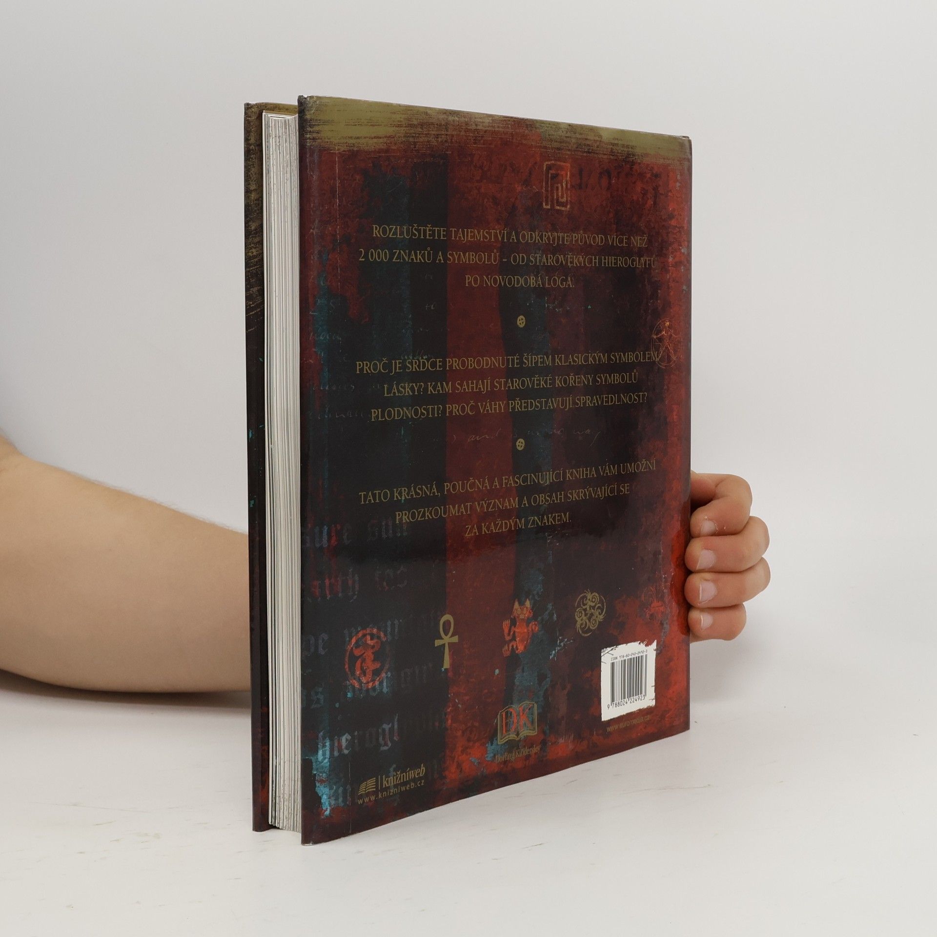 Encyklopedie popisuje a vysvětluje přes 2 000 znaků a symbolů. Od jednoduchých tvarů a barev po božstva, mytická zvířata či moderní loga a mezinárodní symboly. Tematicky uspořádaná kniha s mnoha křížovými odkazy představuje jedinečného průvodce světem vizuálních značek.